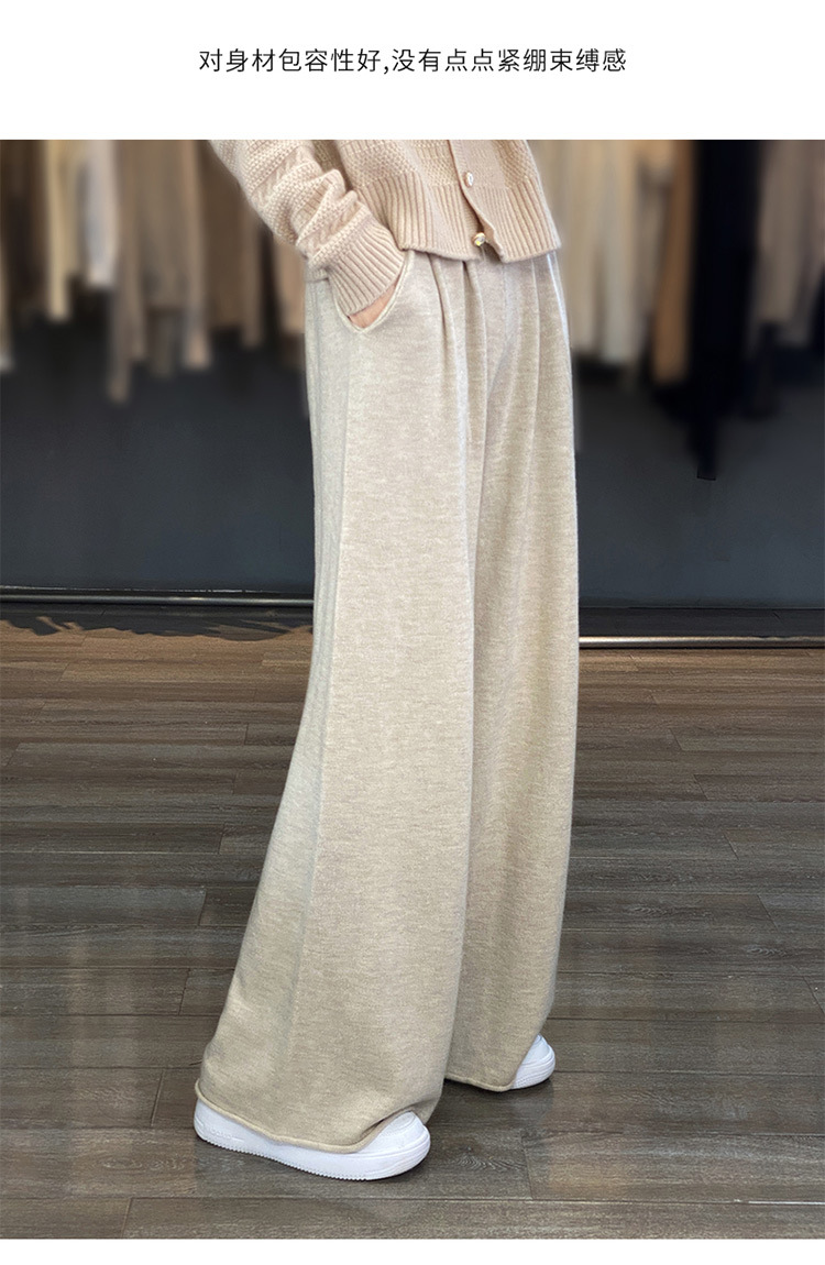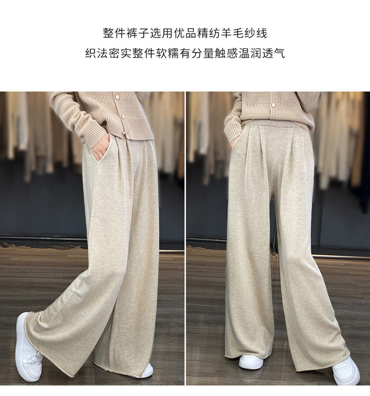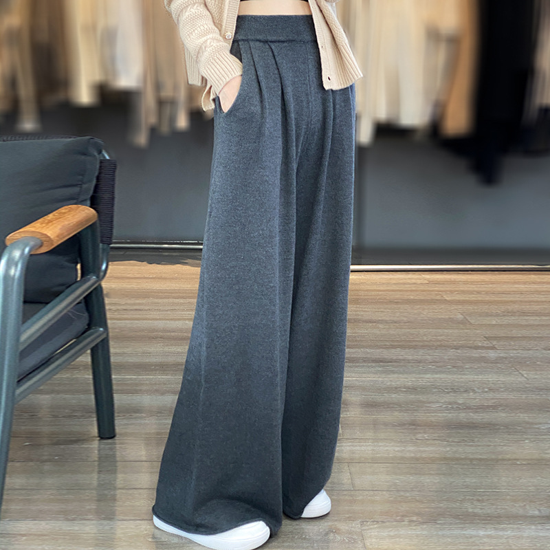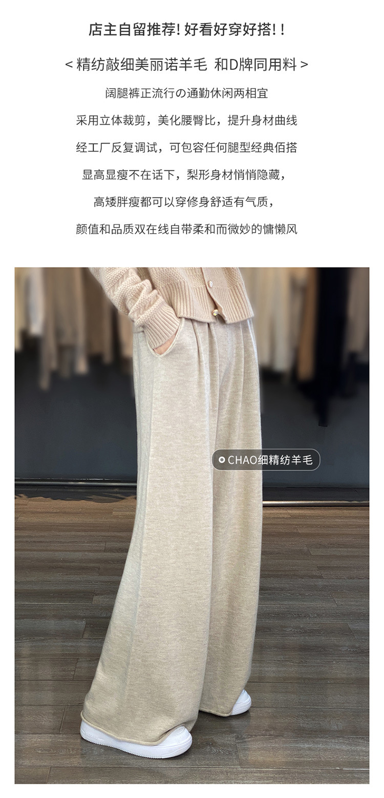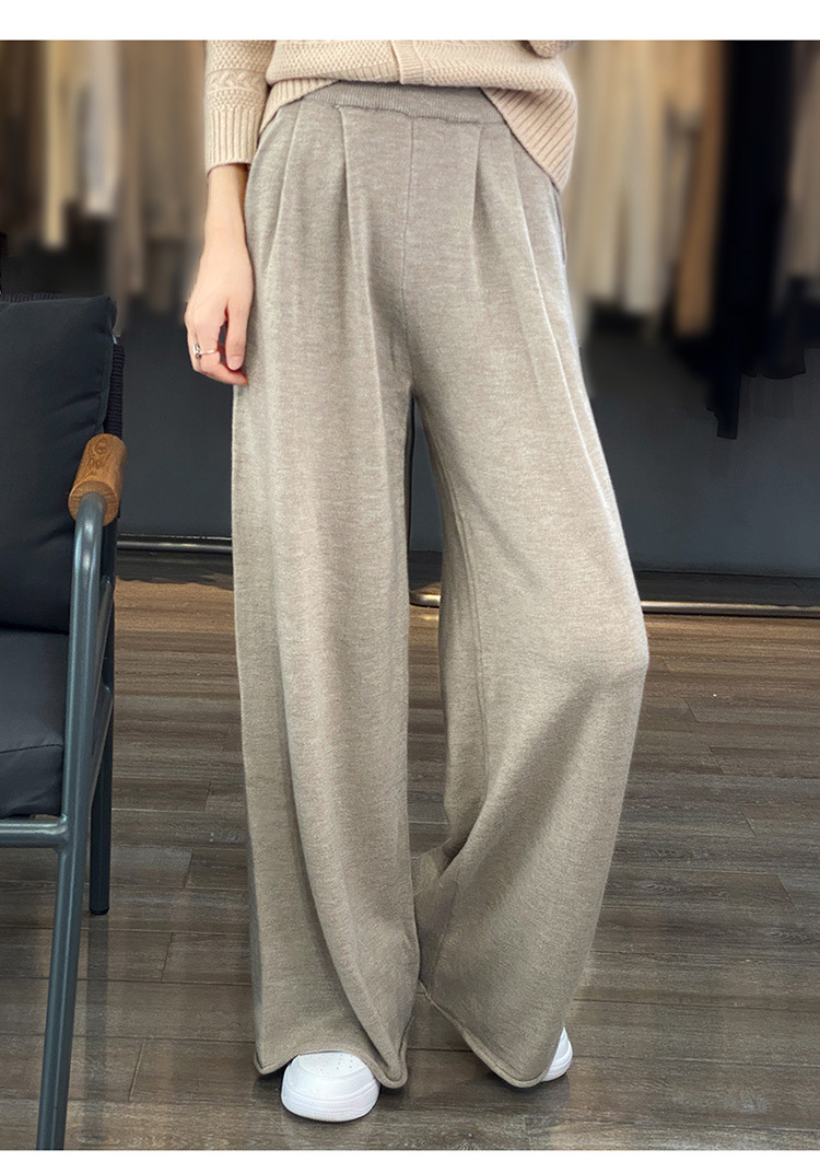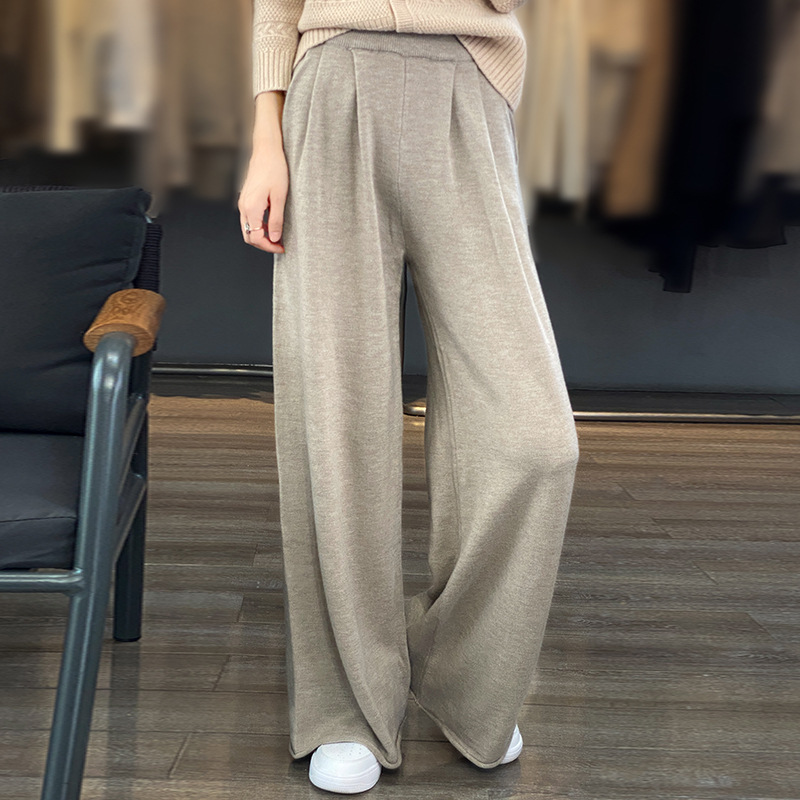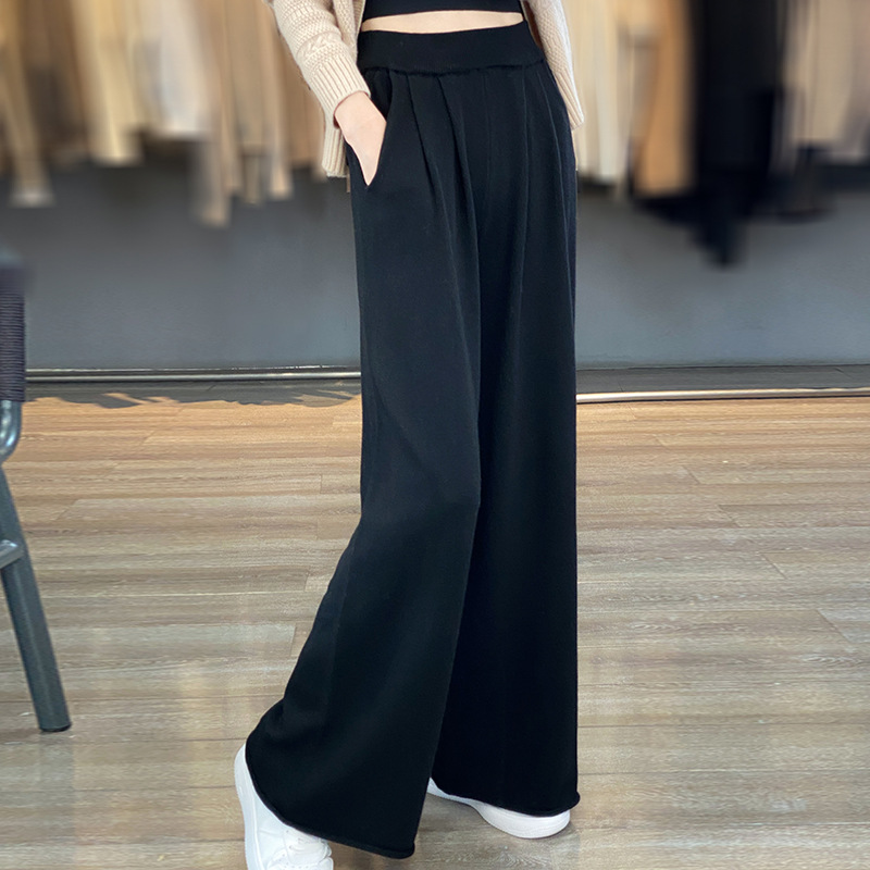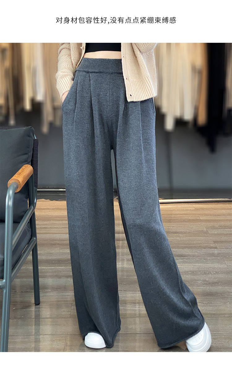 고급 워스티드 울 니트 와이드 팬츠 여성용 하이 웨이스트 데이프 얇은 패션 바지 캐주얼 바지스토어 가기