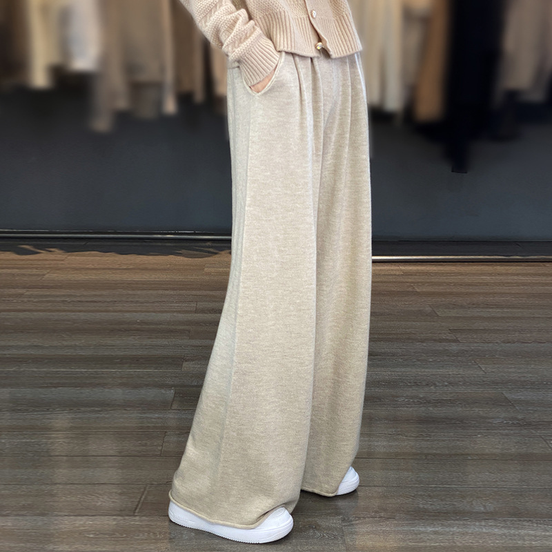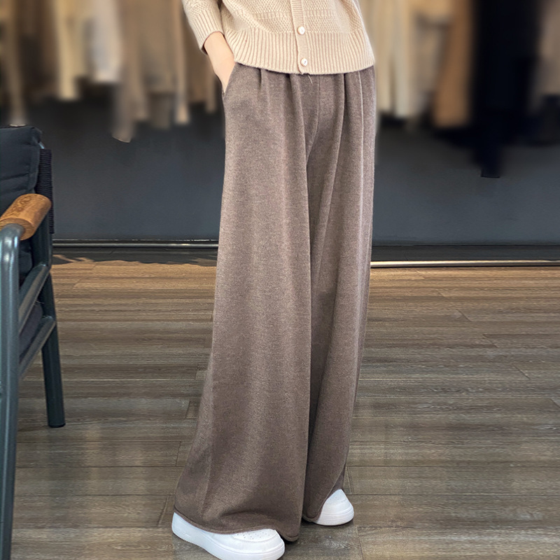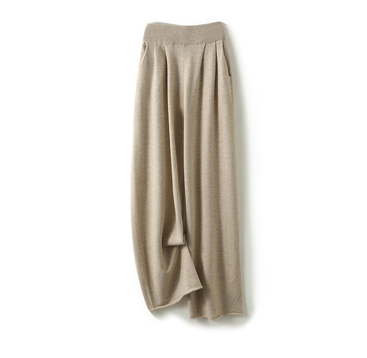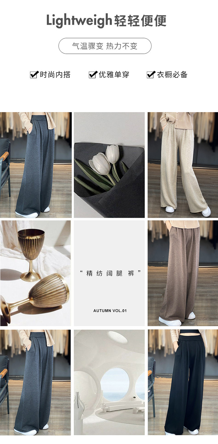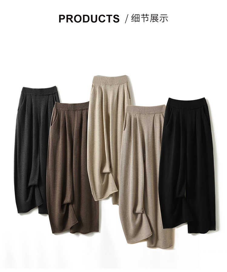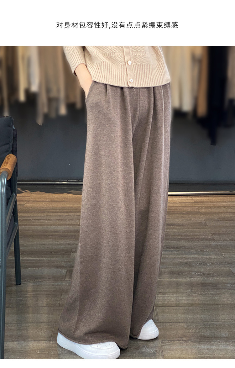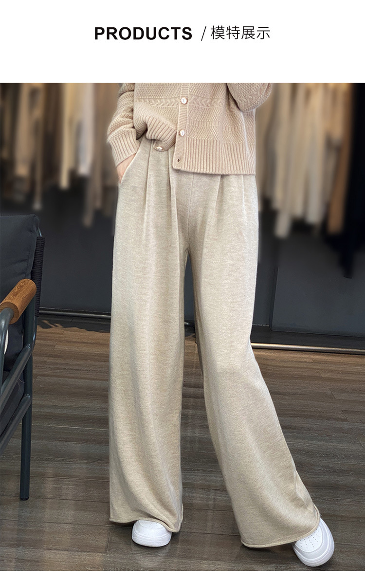 고급 워스티드 울 니트 와이드 팬츠 여성용 하이 웨이스트 데이프 얇은 패션 바지 캐주얼 바지스토어 가기