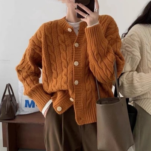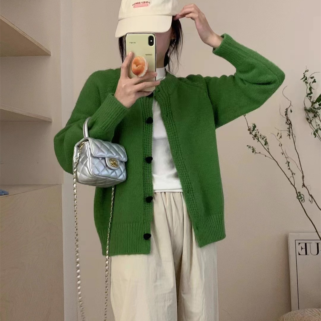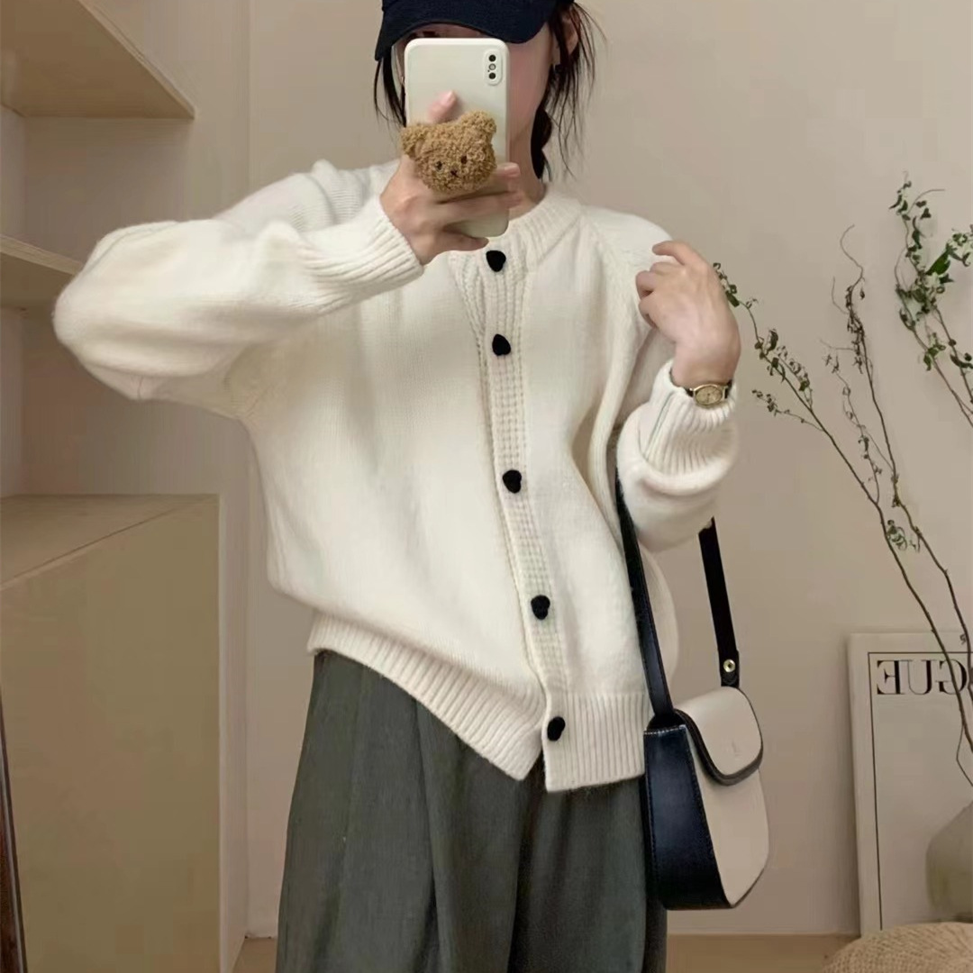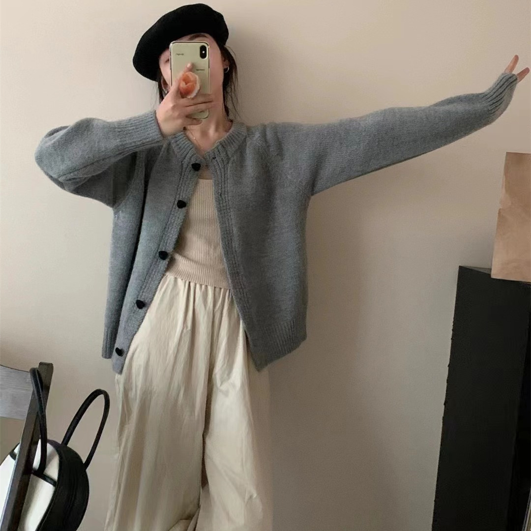 일본 초가을 새로운 복고풍 솔리드 컬러 카디건 여성 스웨터 재킷 여성 게으른 스타일 느슨한 스웨터 탑 유행스토어 가기