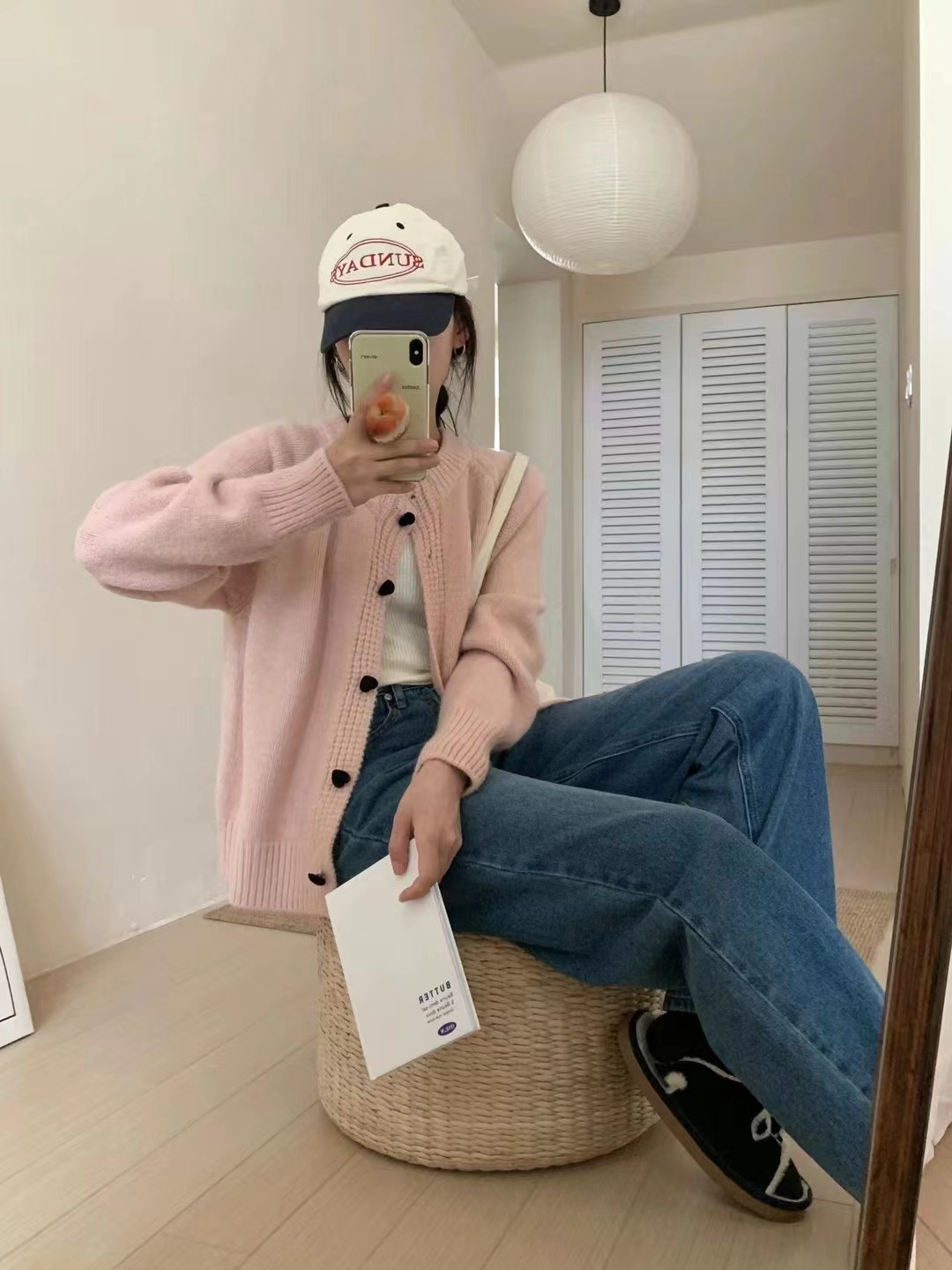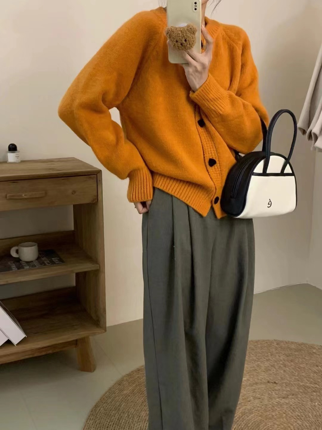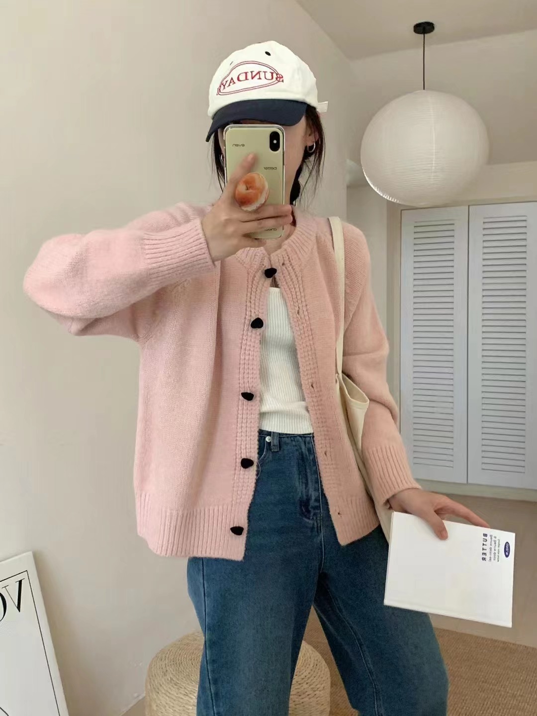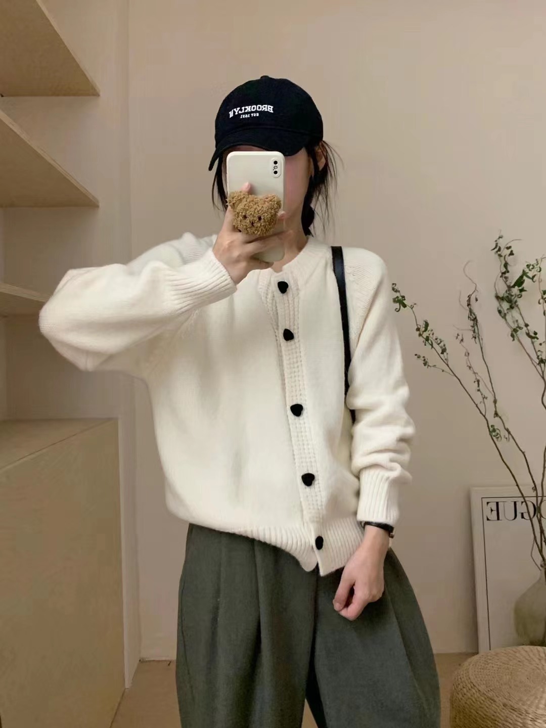 일본 초가을 새로운 복고풍 솔리드 컬러 카디건 여성 스웨터 재킷 여성 게으른 스타일 느슨한 스웨터 탑 유행스토어 가기