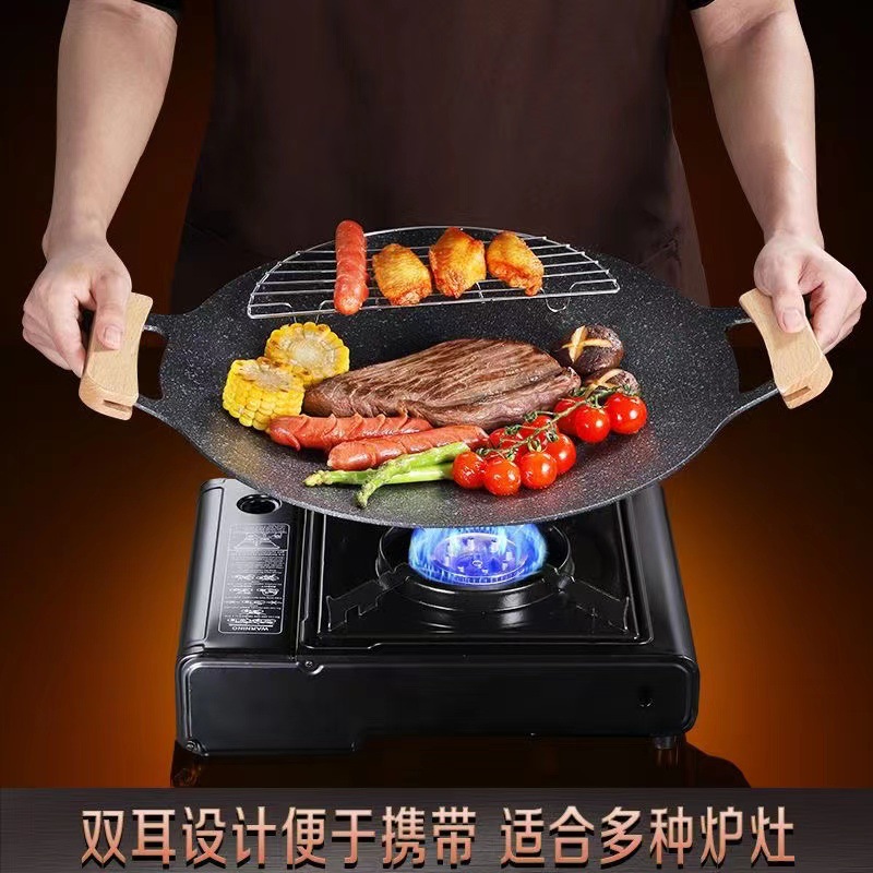 한국식 Maifanite 원형 철판 논스틱 베이킹 플레이트 tepanyaki 야외 파티 휴대용 바베큐 플레이트 카세트 스토브 유니버설스토어 가기