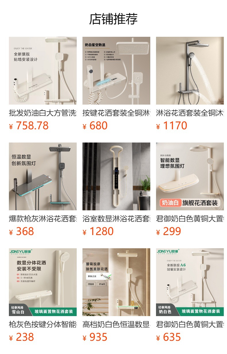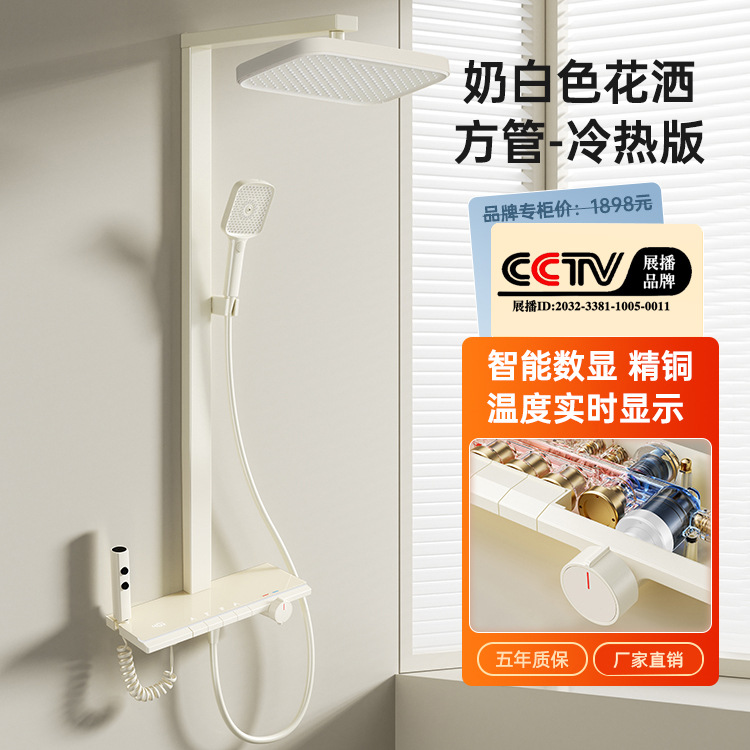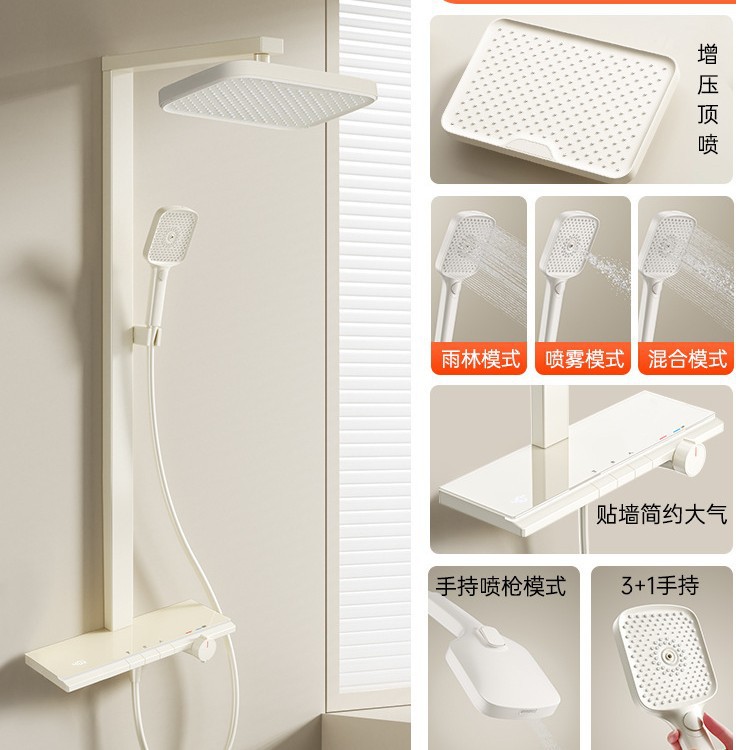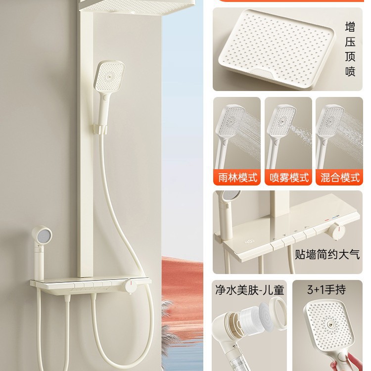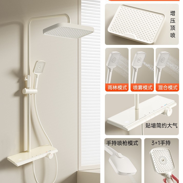 모든 구리 유백색 샤워 헤드, 항온 샤워 헤드, 부스터 노즐, 벽걸이 샤워 세트의 완전한 세트스토어 가기