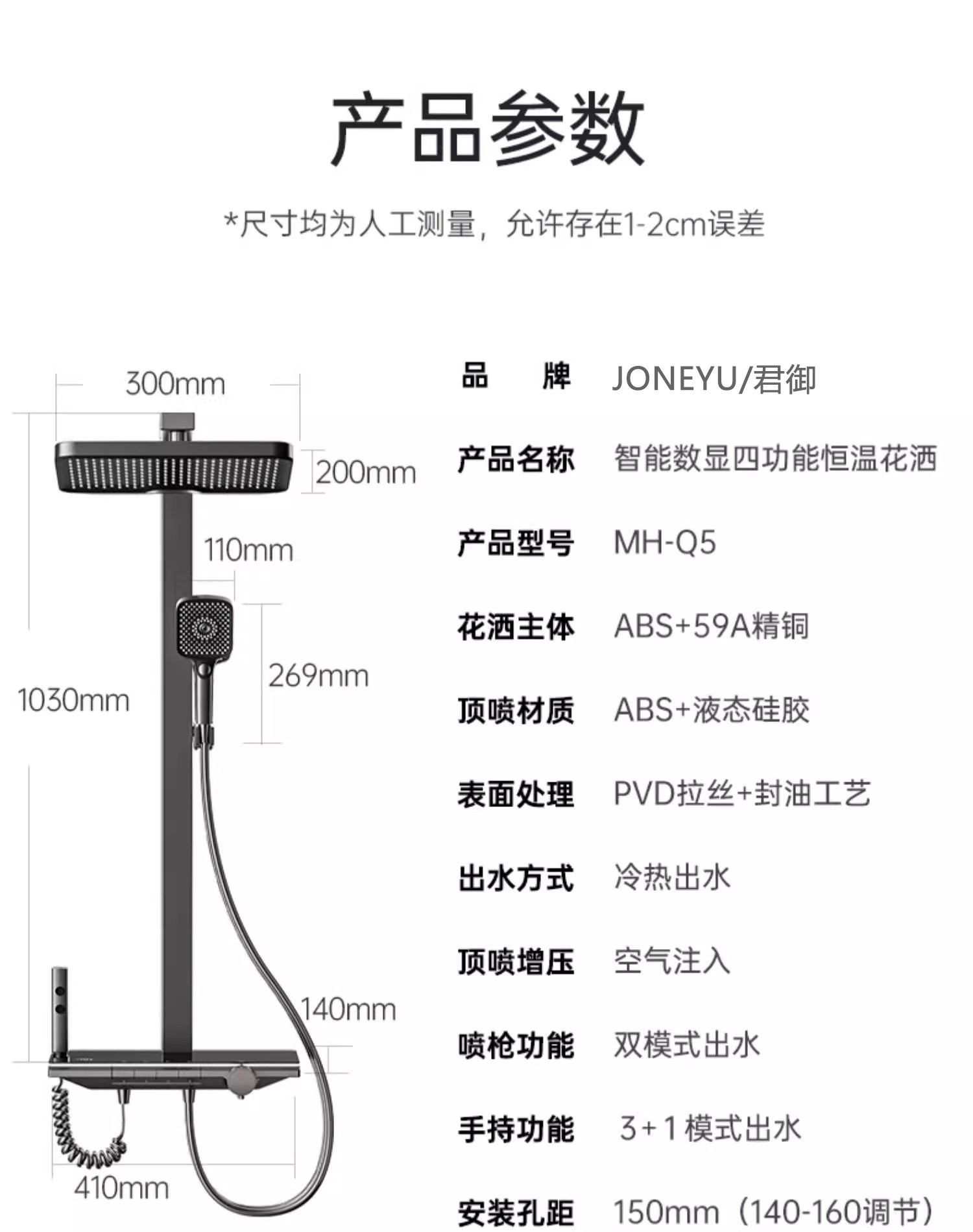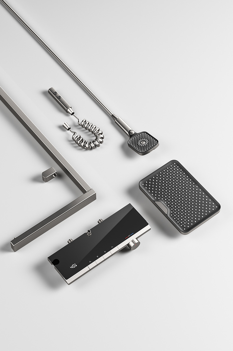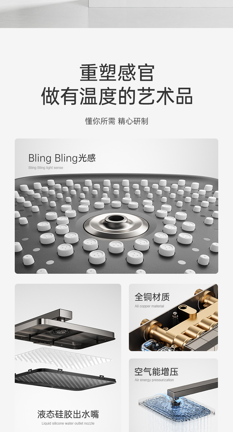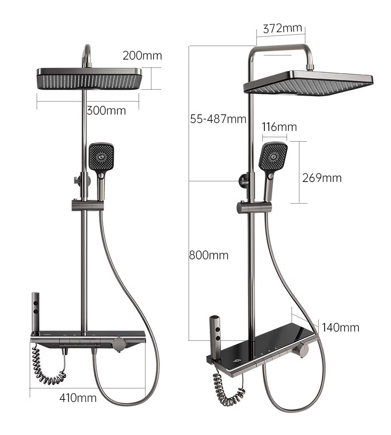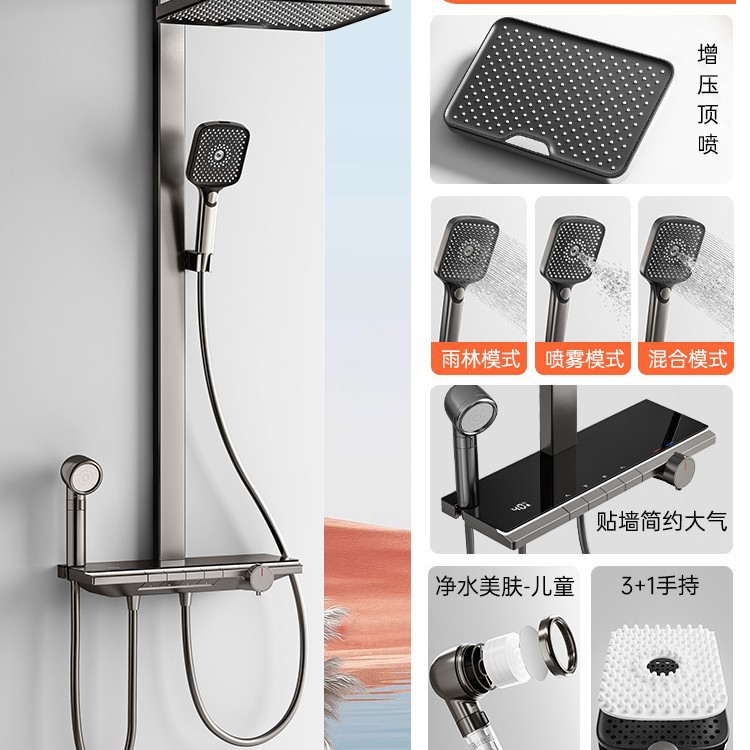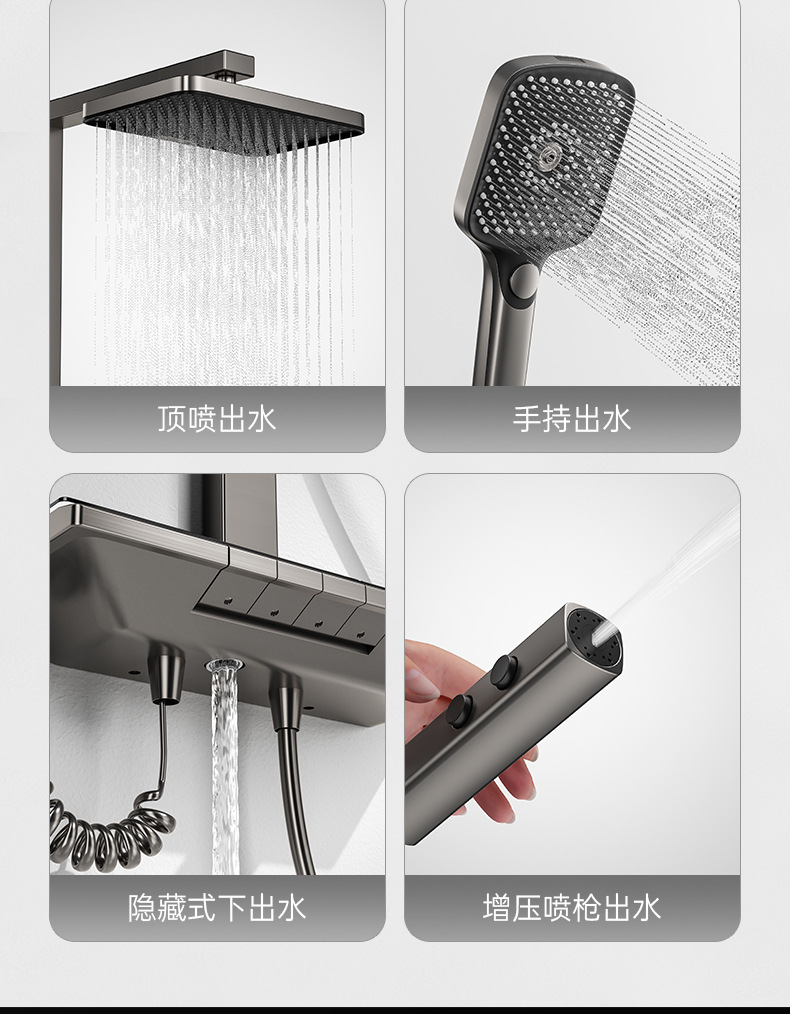 • 8869 건 그레이 미세 구리 본체 4단 물 배출구 냉온 모델 샤워 세트