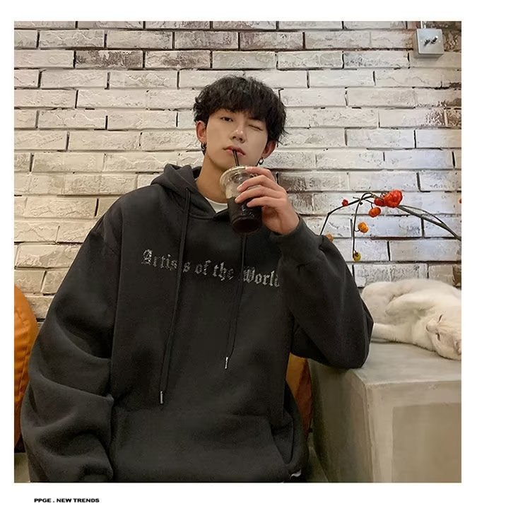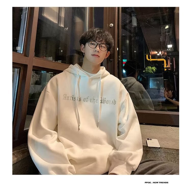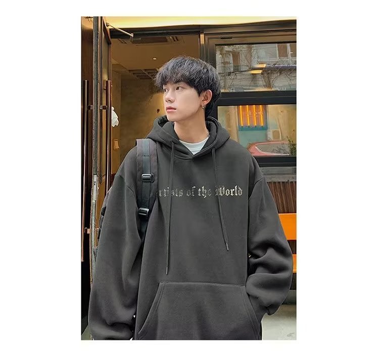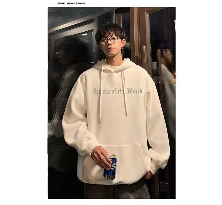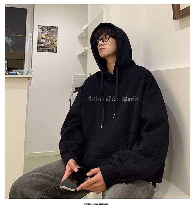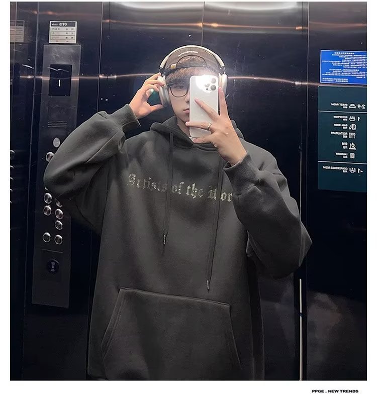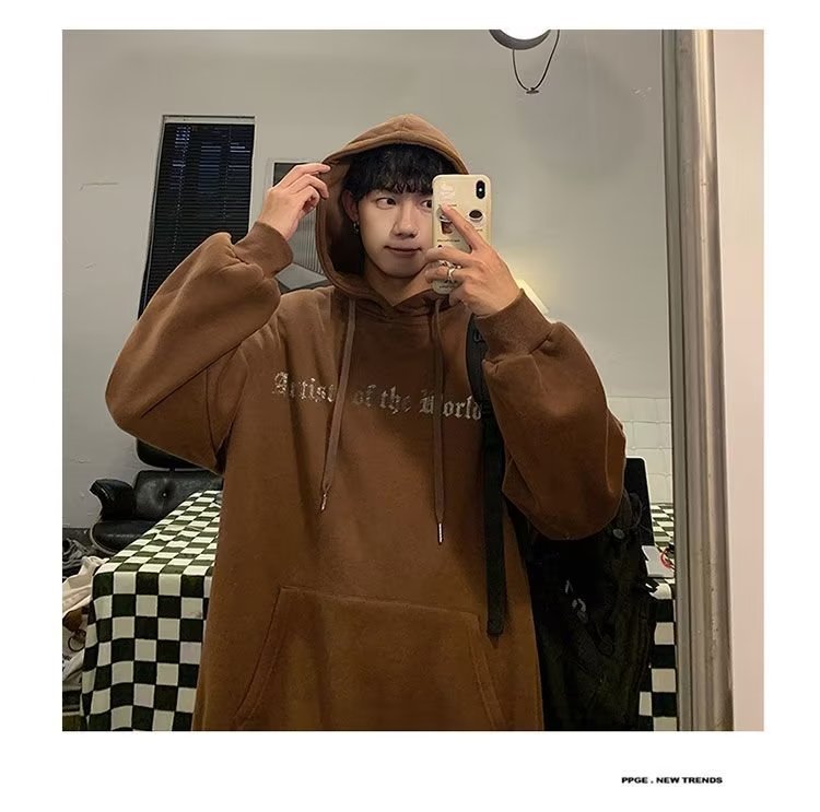 하이 스트리트 아메리칸 후드 스웻셔츠 남자의 트렌디 브랜드 가을과 겨울 새로운 기모 루즈한 탑 옷 청소년 캐주얼 재킷