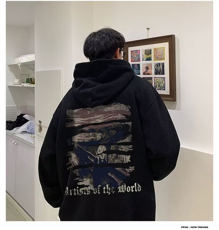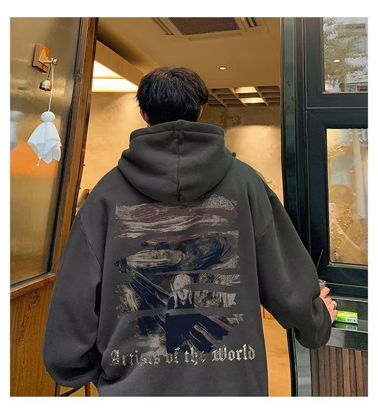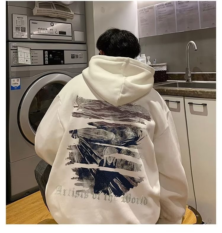하이 스트리트 아메리칸 후드 스웻셔츠 남자의 트렌디 브랜드 가을과 겨울 새로운 기모 루즈한 탑 옷 청소년 캐주얼 재킷스토어 가기