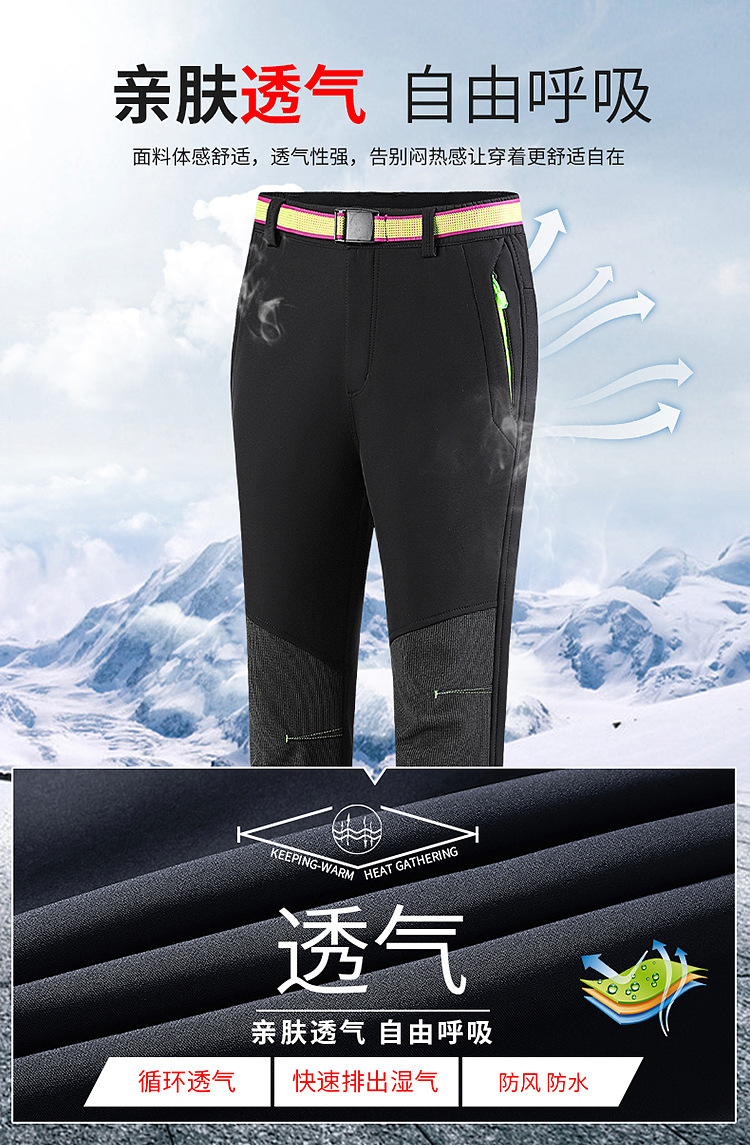 국경 간 야외 소프트 쉘 바지 기모 두꺼운 겨울 따뜻한 스키 하이킹 바지 느슨한 방풍 방수 전투 바지