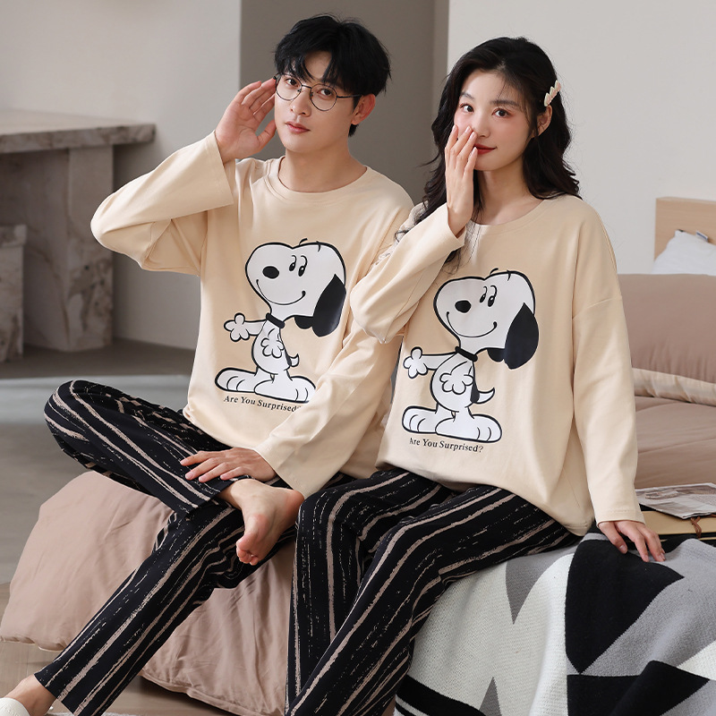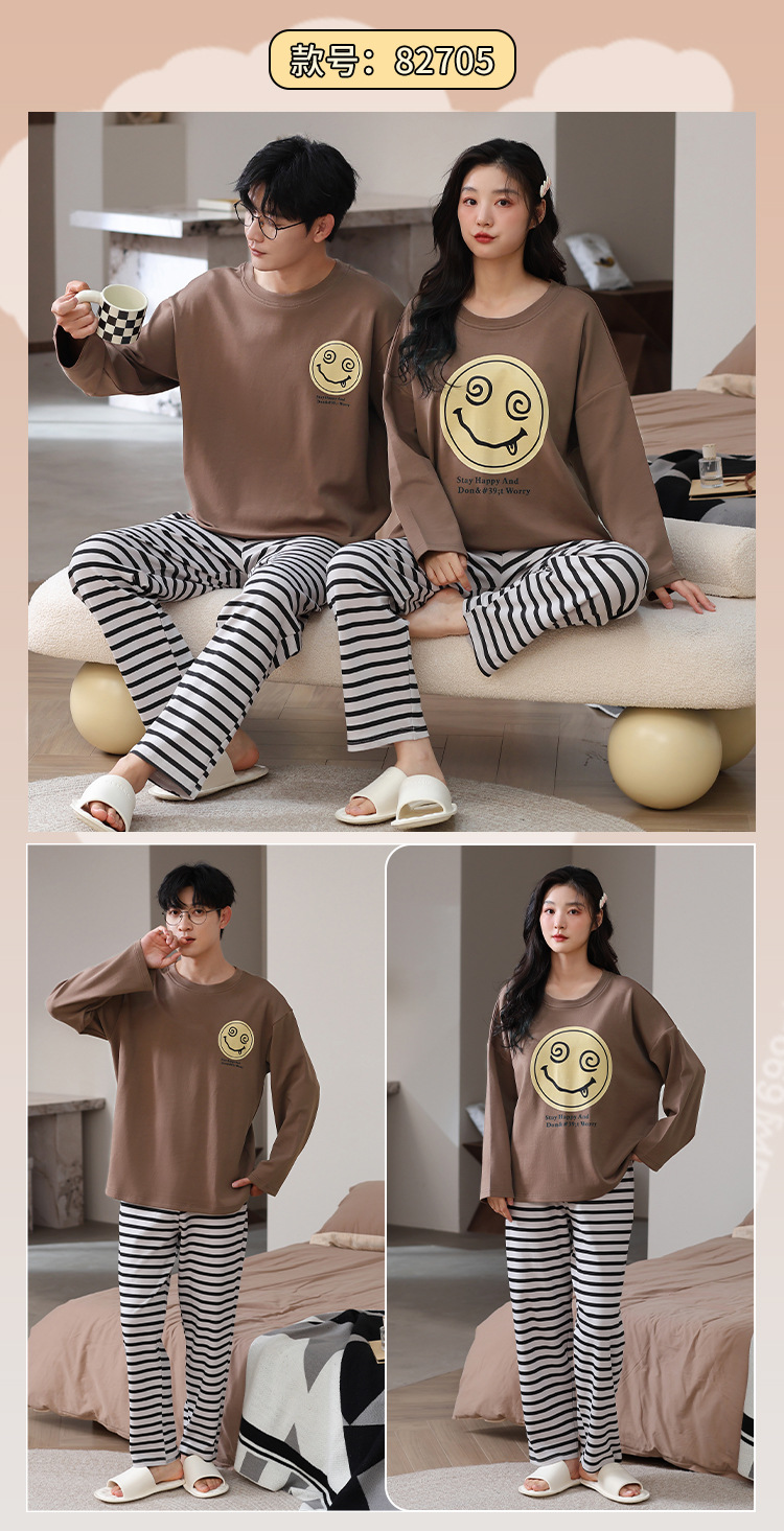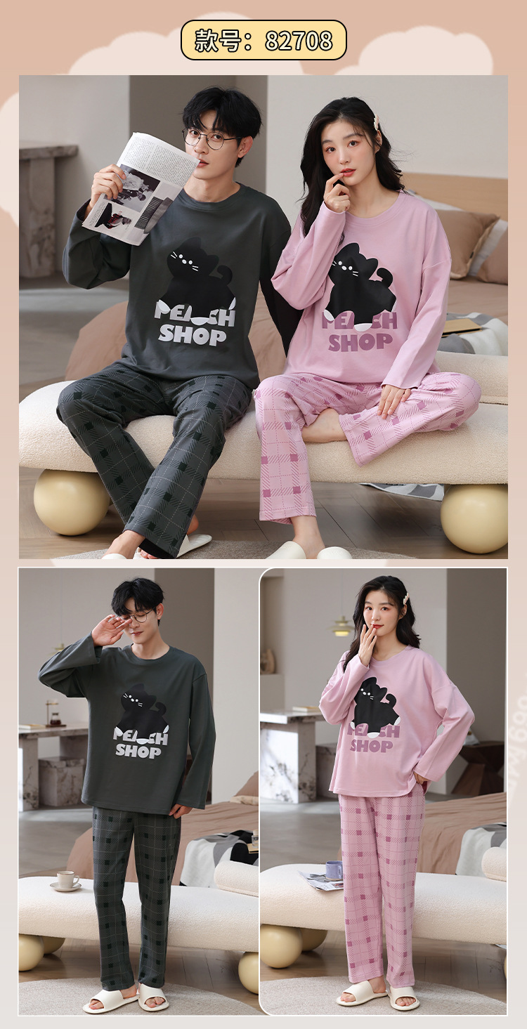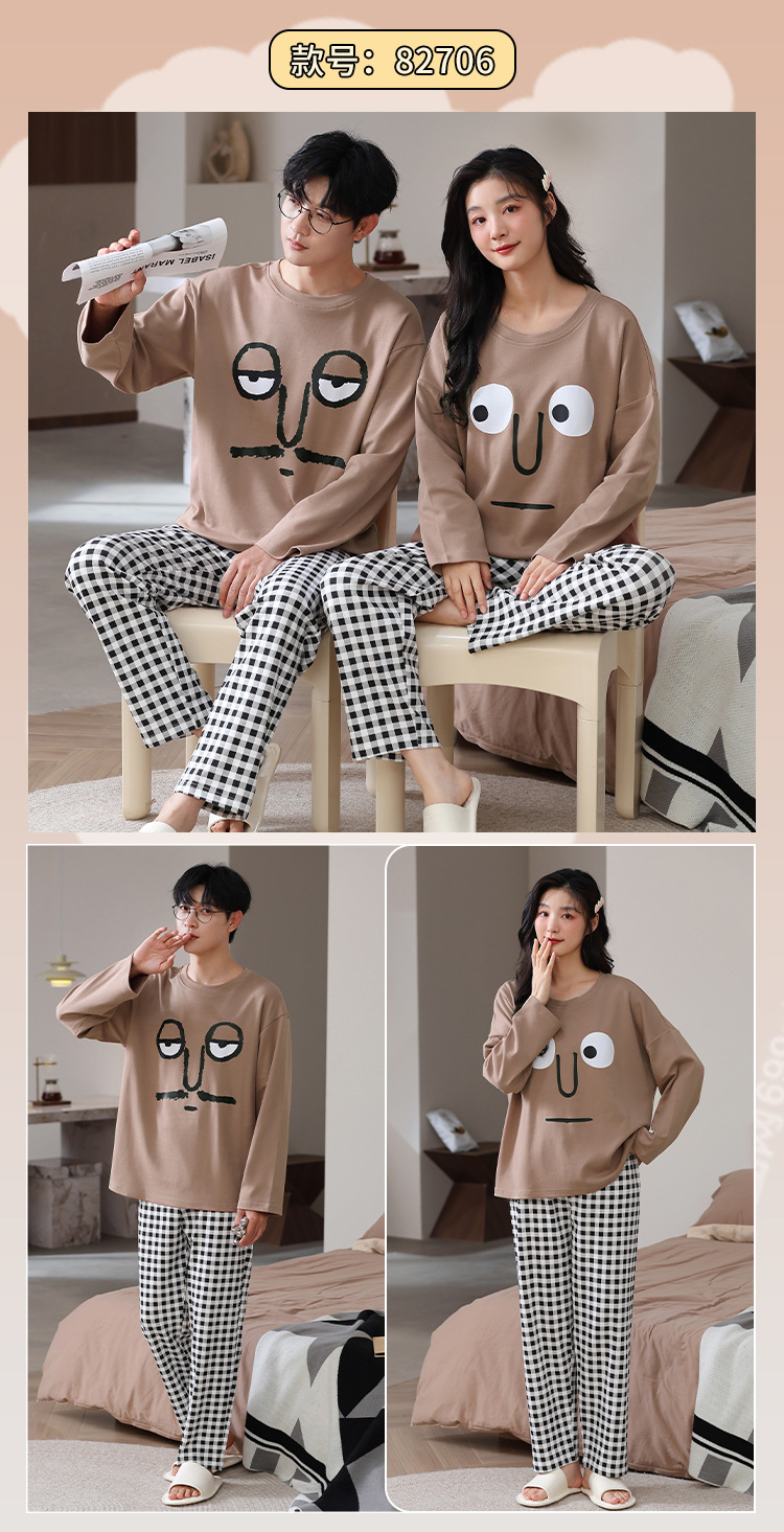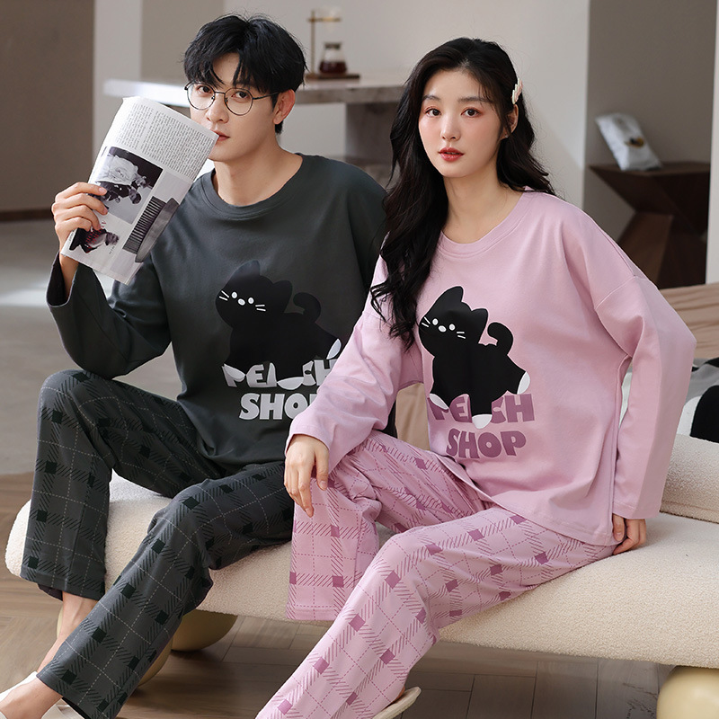 새로운 커플 잠옷 여성용 봄과 가을 편안한 긴팔 투피스 세트 남성용 느슨한 캐주얼 가정복 여성용 외출스토어 가기
