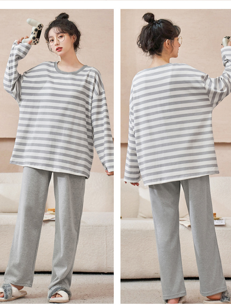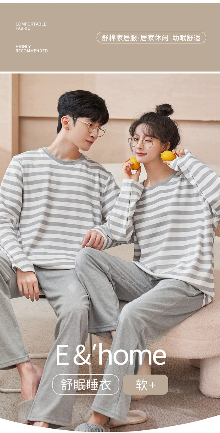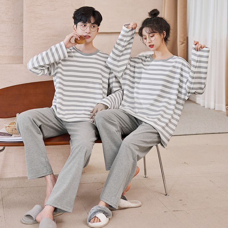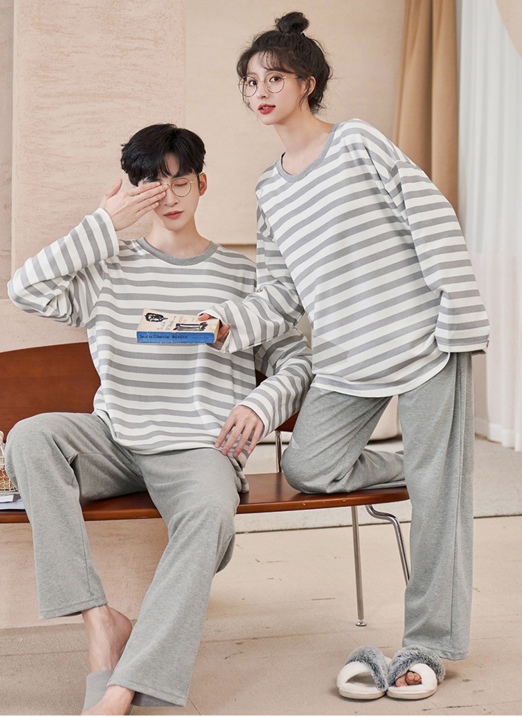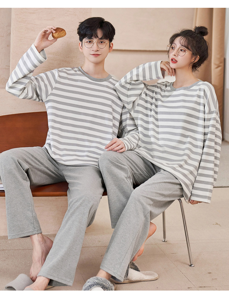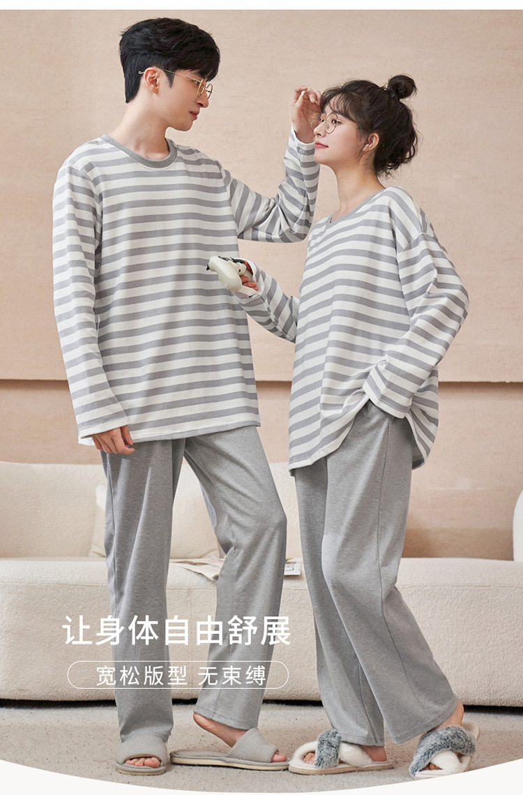 새로운 커플 잠옷 여성용 봄과 가을 편안한 긴팔 투피스 세트 남성용 느슨한 캐주얼 가정복 여성용 외출