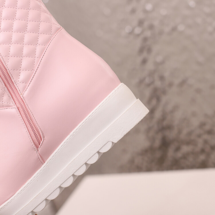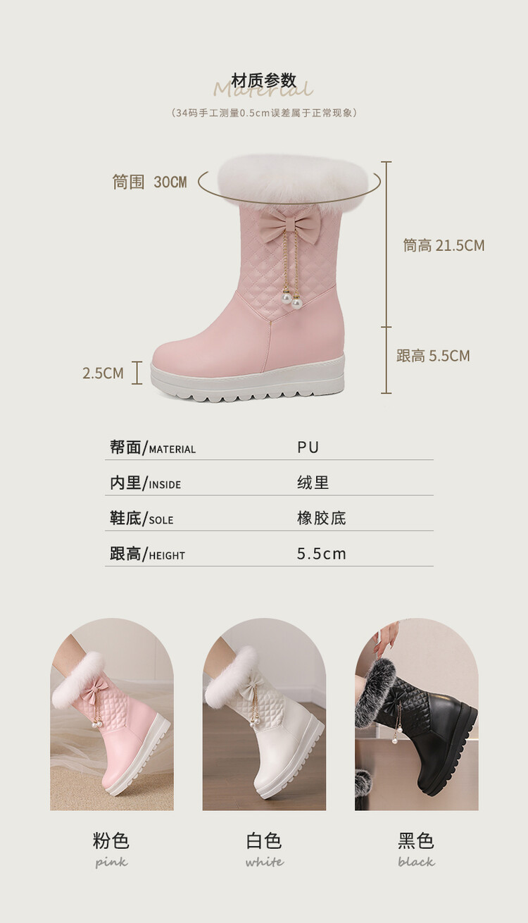 겨울 라운드 헤드 두꺼운 따뜻한 스노우 부츠 두꺼운 바닥 플랫폼 바닥 공주 사이드 지퍼 내부 높이 달콤한 여성용 짧은 부츠