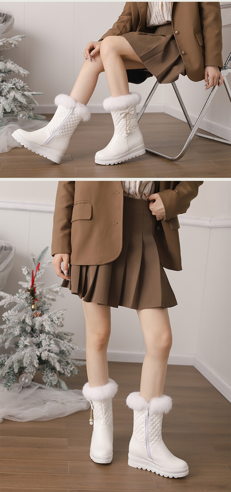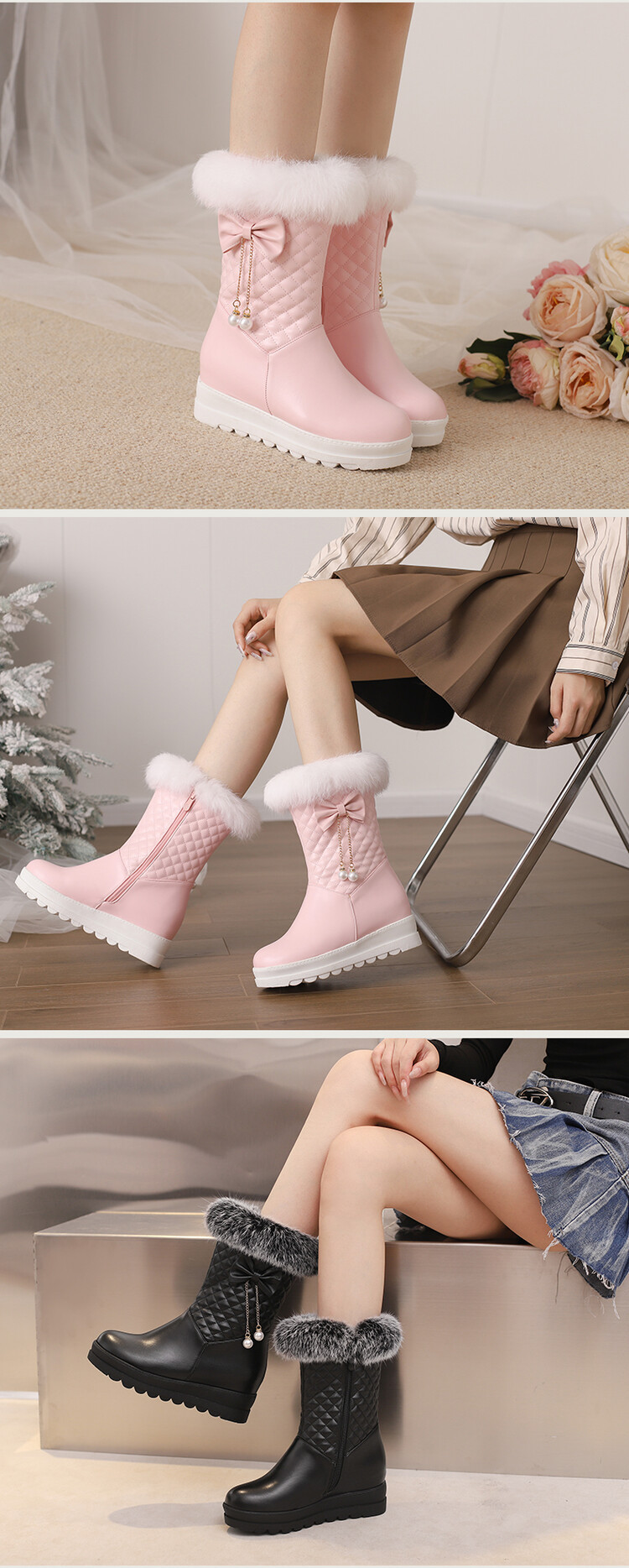 겨울 라운드 헤드 두꺼운 따뜻한 스노우 부츠 두꺼운 바닥 플랫폼 바닥 공주 사이드 지퍼 내부 높이 달콤한 여성용 짧은 부츠스토어 가기