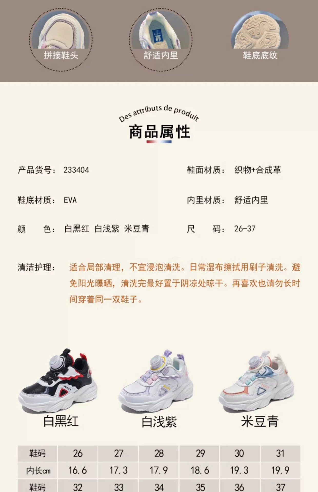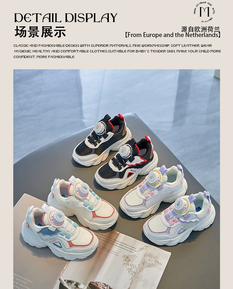 미피 미피 걸스 신발 2023 가을 새로운 어린이 캐주얼 운동화 회전 버클 경량 러닝화