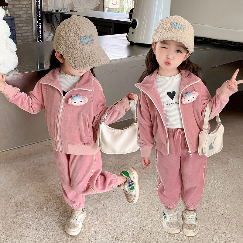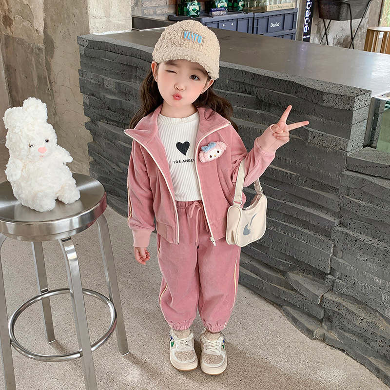 소녀 가을 세트 2023 새로운 소녀 세련된 유행 어린이 가을 캐주얼 아기 패션 2 종 세트스토어 가기