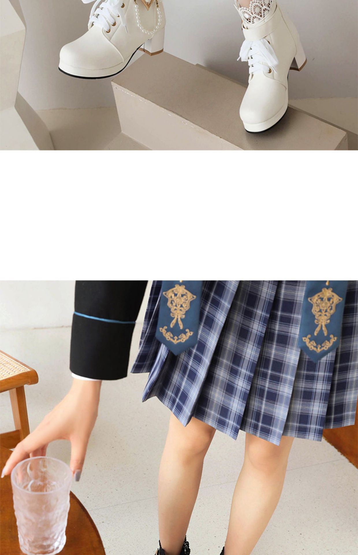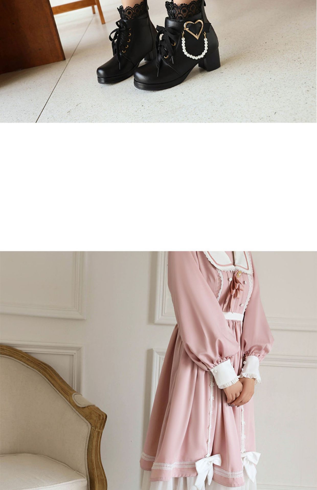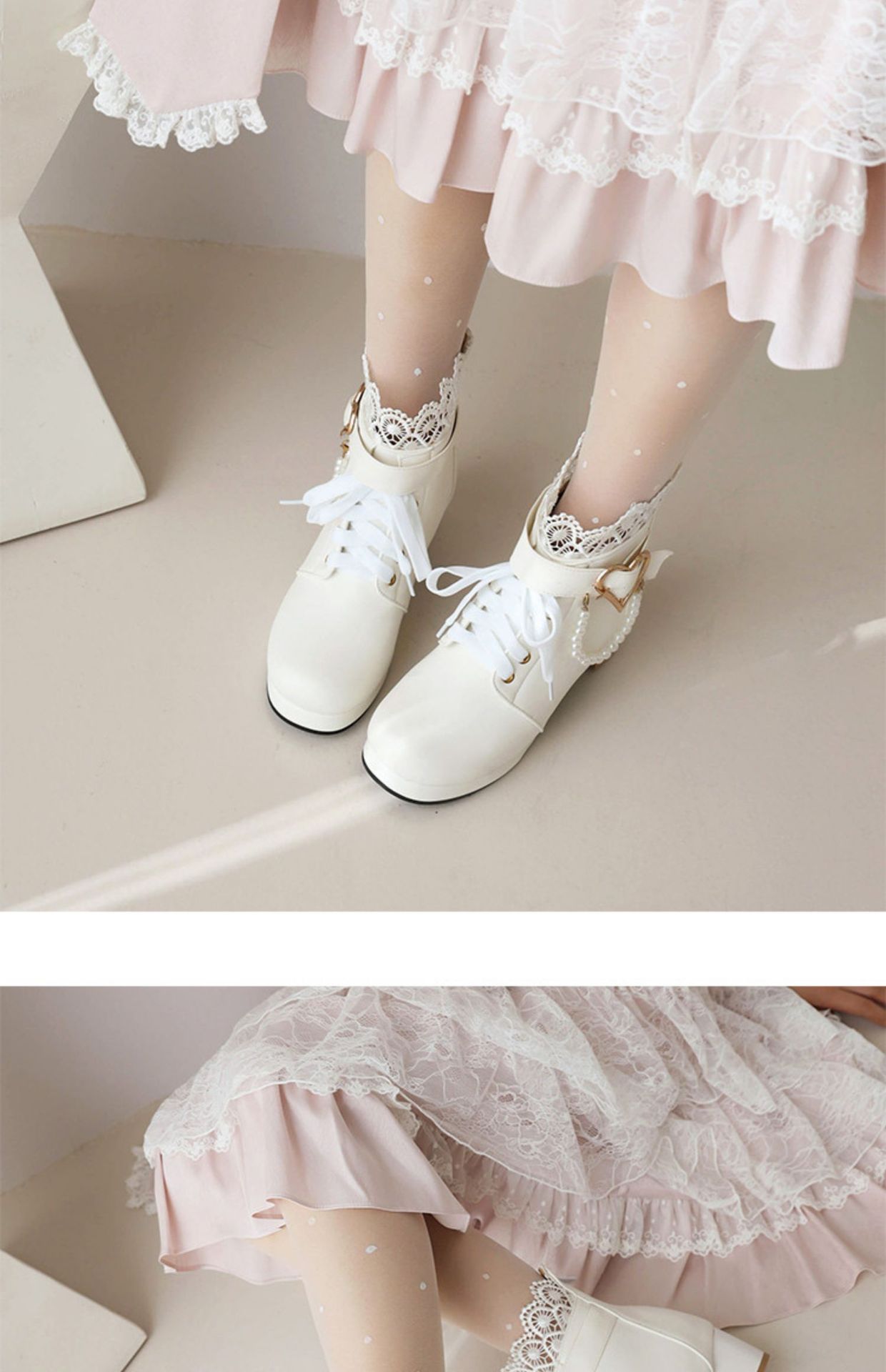 달콤한 레이스 ~ 패션 청키 힐 짧은 부츠 플랫폼 미디엄 힐 플러스 사이즈 여성 신발 로리타 레이스 업 페르시 마틴 부츠
