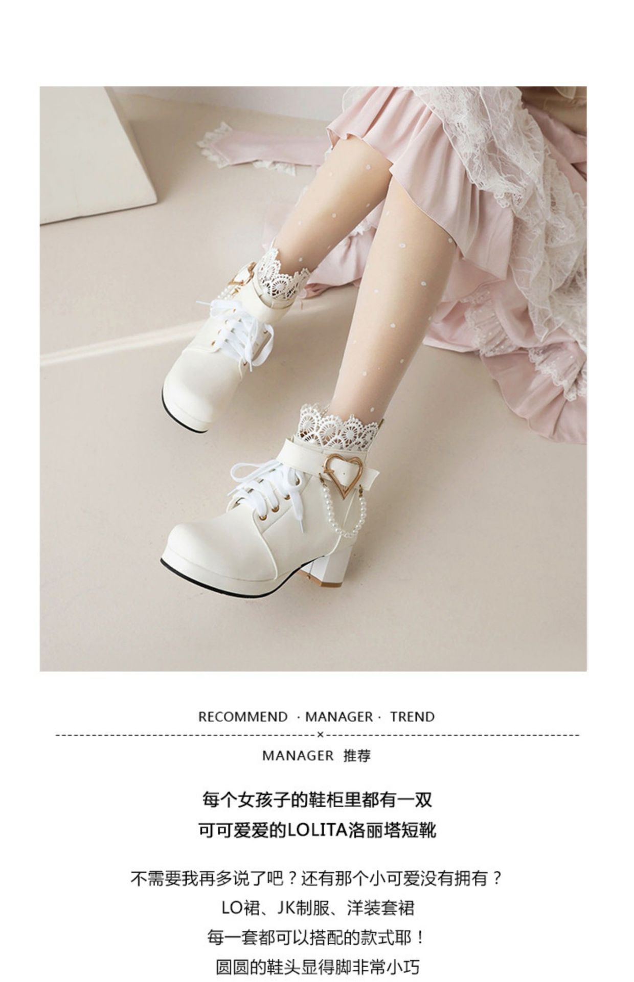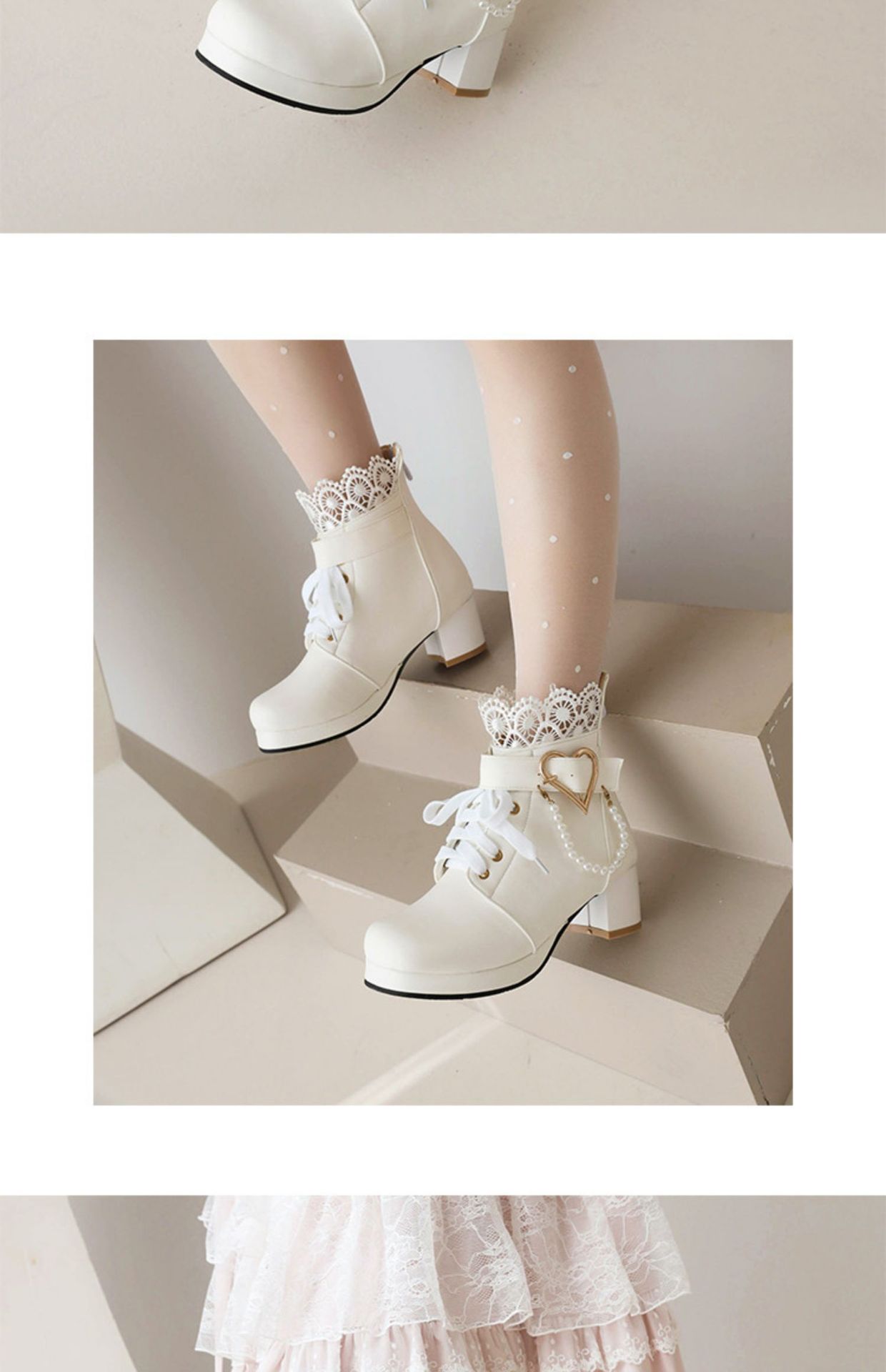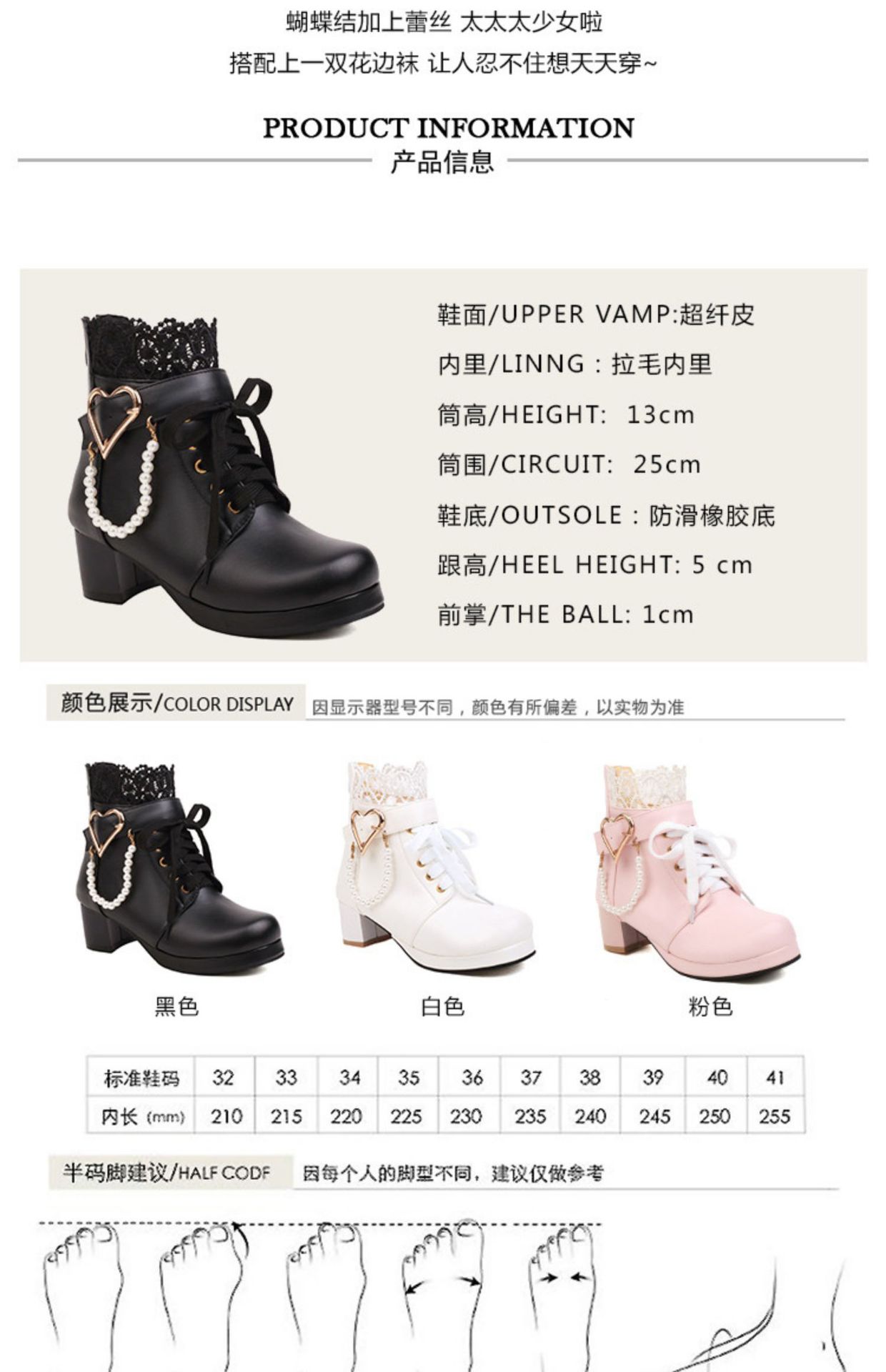 달콤한 레이스 ~ 패션 청키 힐 짧은 부츠 플랫폼 미디엄 힐 플러스 사이즈 여성 신발 로리타 레이스 업 페르시 마틴 부츠스토어 가기