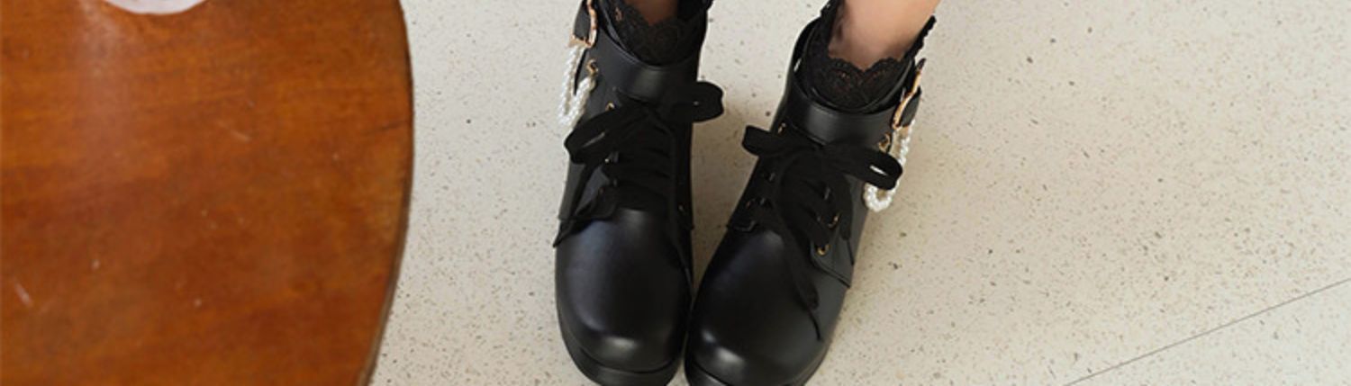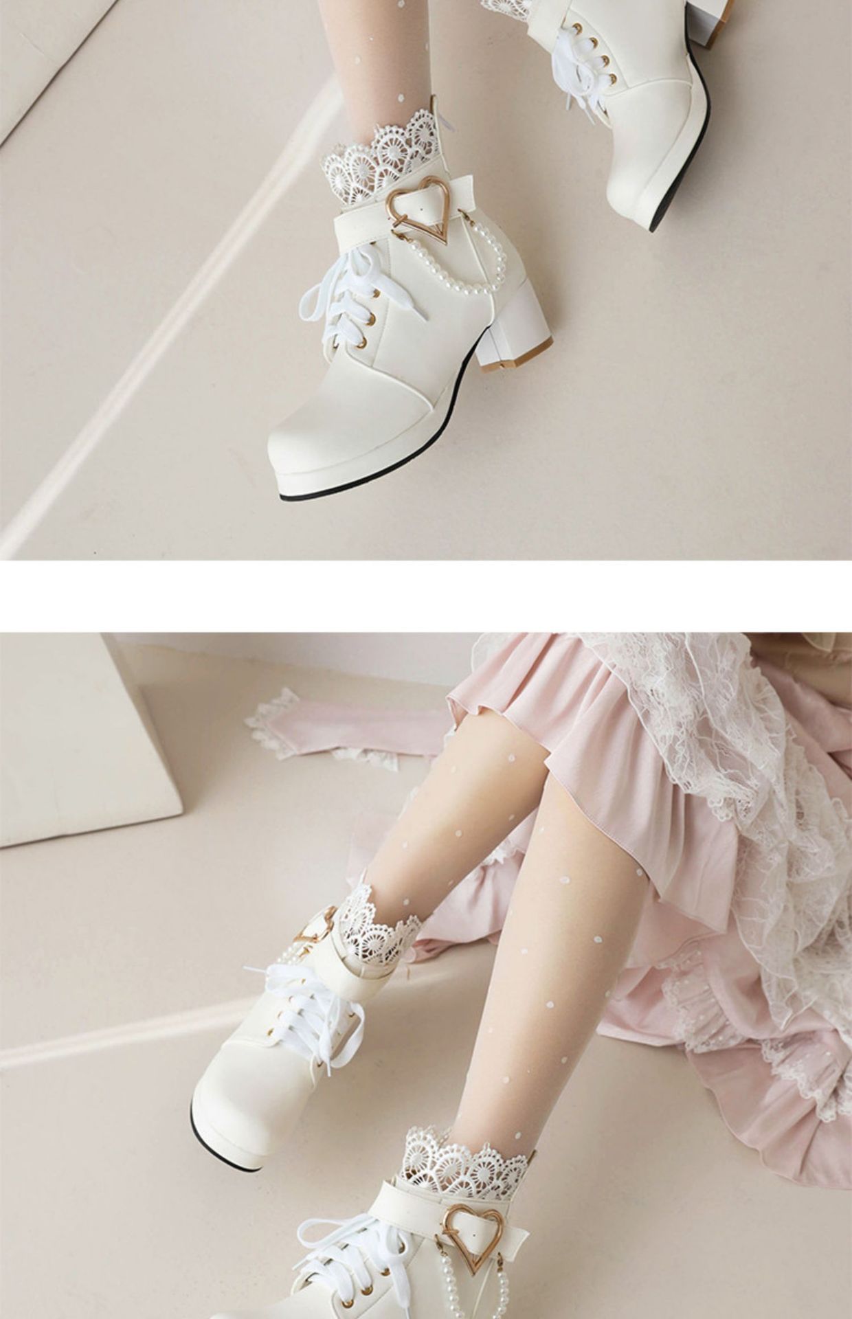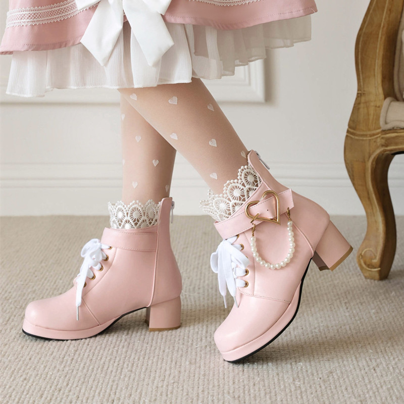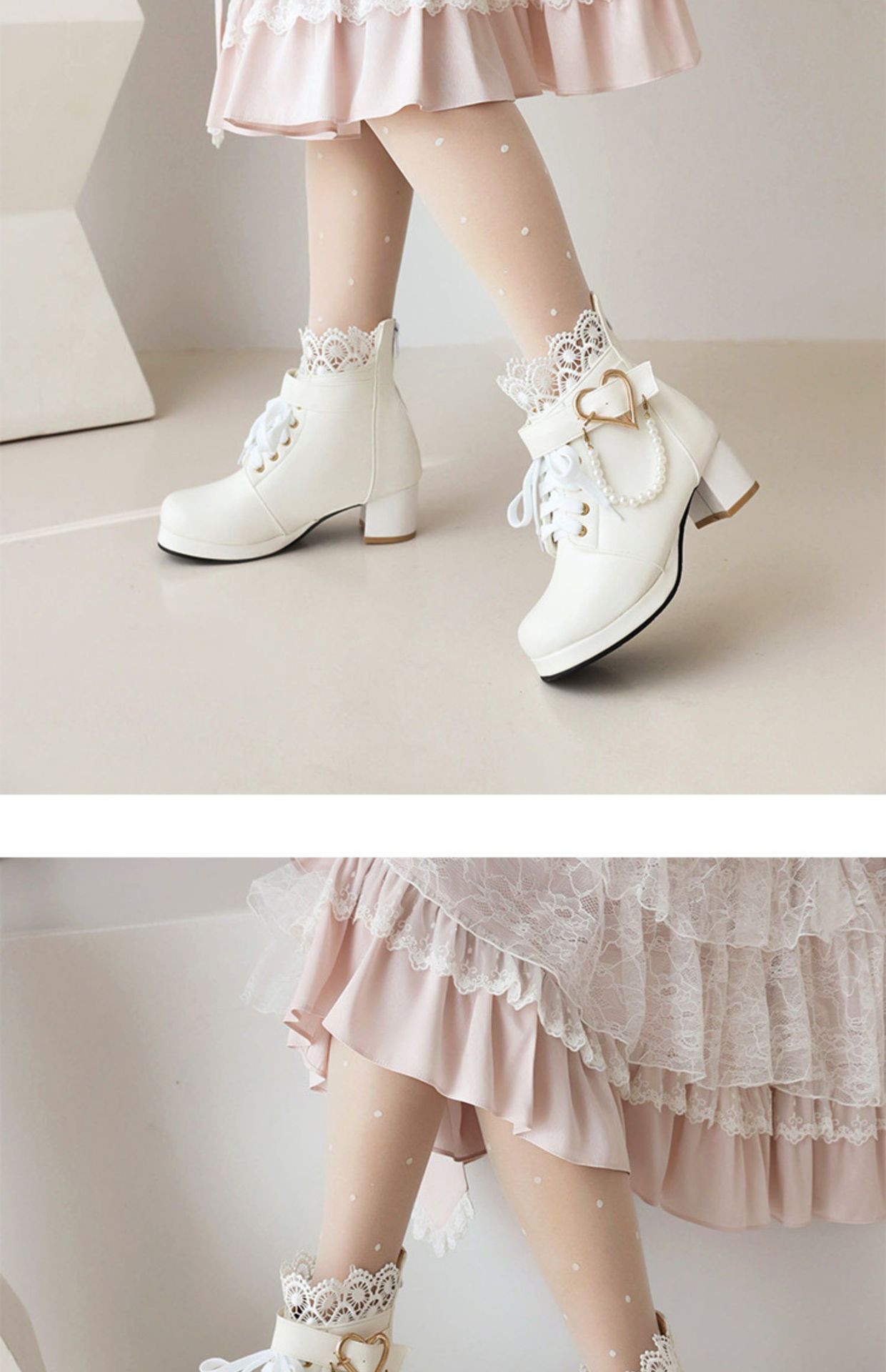 달콤한 레이스 ~ 패션 청키 힐 짧은 부츠 플랫폼 미디엄 힐 플러스 사이즈 여성 신발 로리타 레이스 업 페르시 마틴 부츠스토어 가기