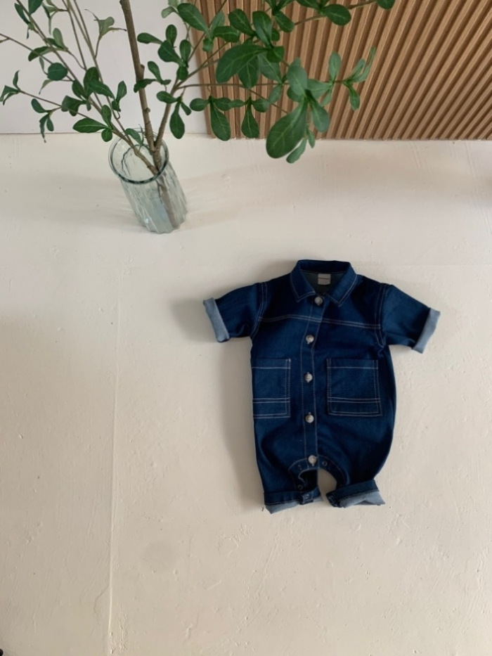 한국식 남성과 여성의 아기의 유행 데님 점프 슈트 아기의 가을 복장 유행 캐주얼 긴팔 등반 세트스토어 가기