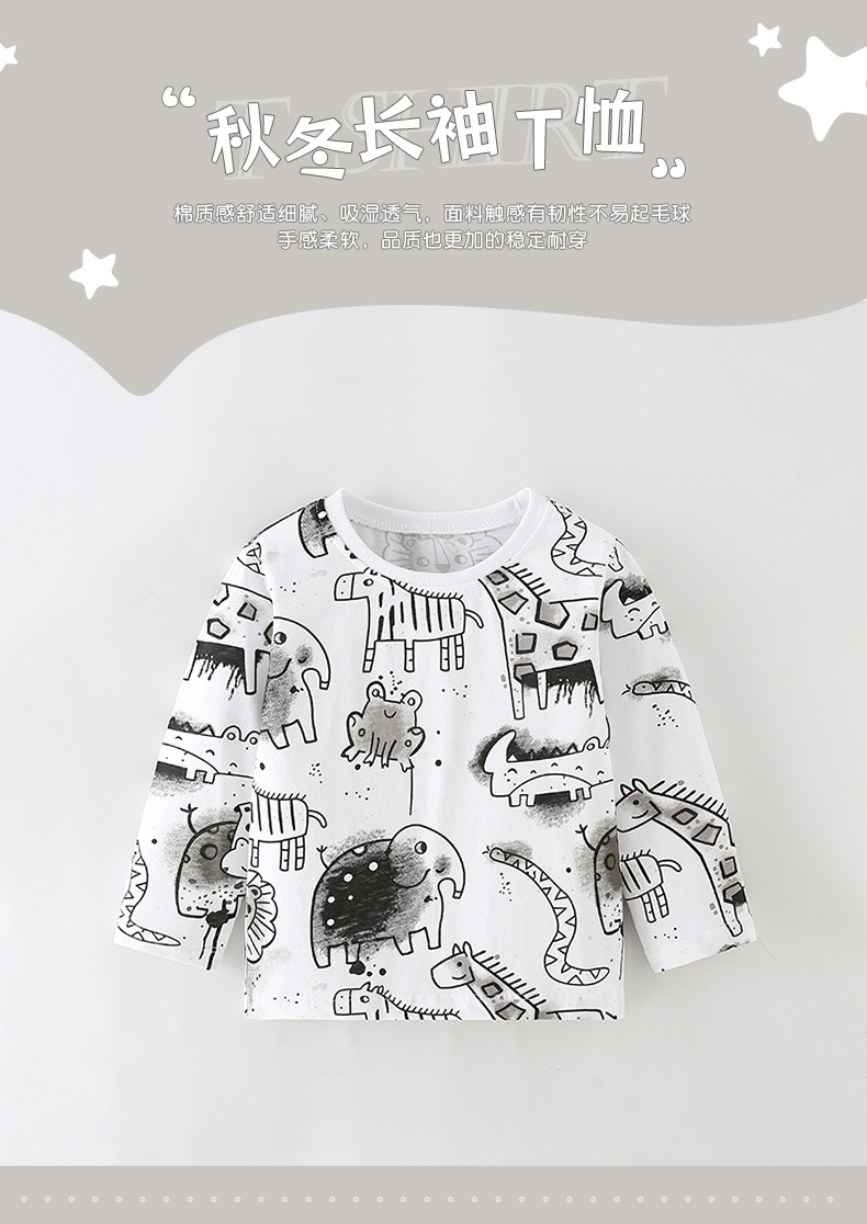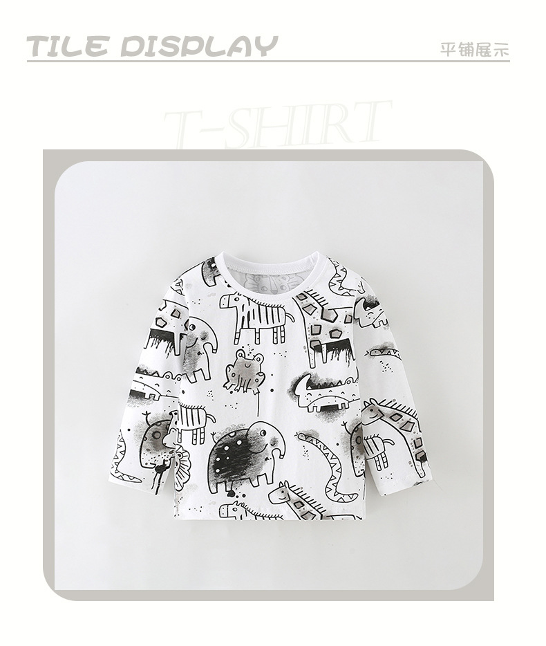 재고 malwee 아동복 티셔츠 가을 새로운 인쇄 라운드 넥 셔츠 캐주얼 긴 소매 기본 셔츠 어린이 탑스토어 가기