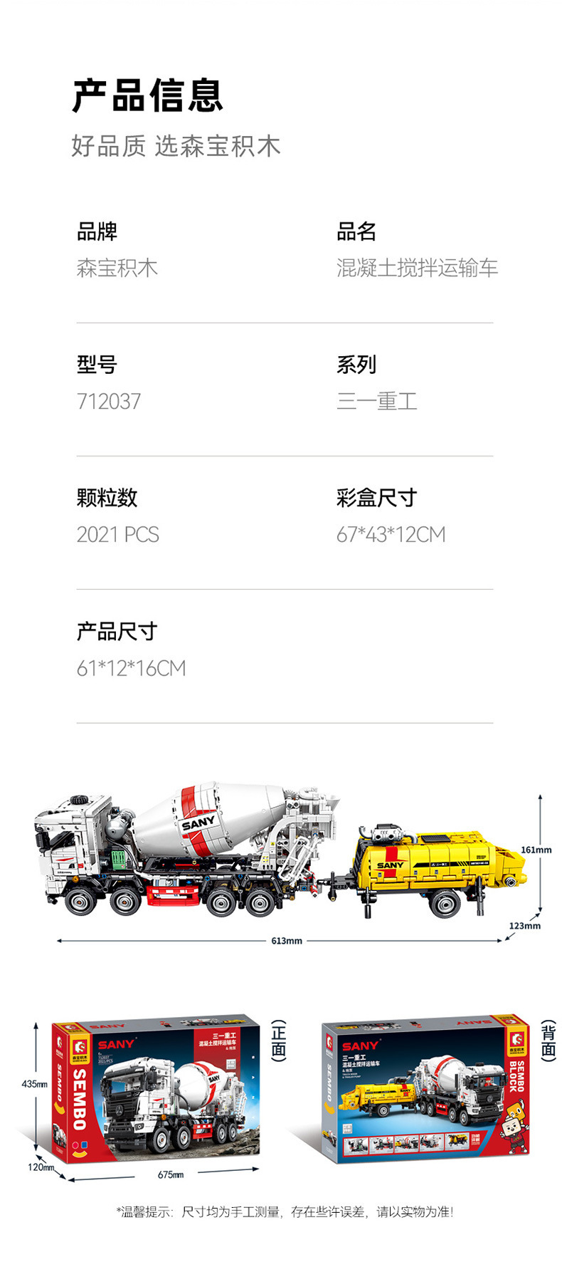 Senbao 712017 Sany 중공업 어린이 조립 추정 빌딩 블록 장난감 장식품 소년 생일 선물 상품스토어 가기