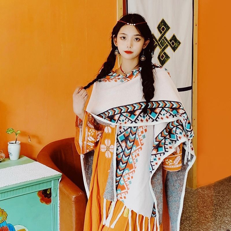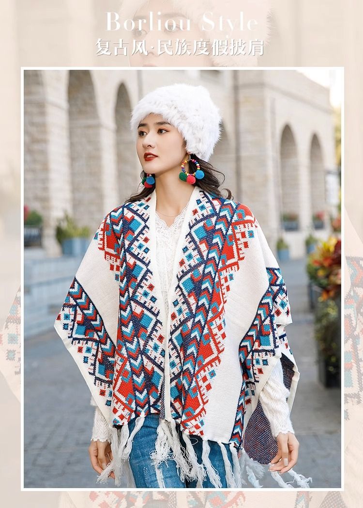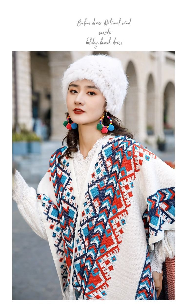 에스닉 스타일 숄 스트라이프 아우터 웨어 윈난 리장 달리 칭하이 신장 여행복 폭발 따뜻한 가디건스토어 가기