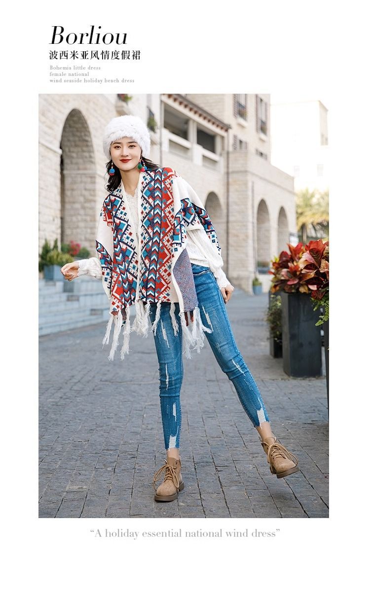 에스닉 스타일 숄 스트라이프 아우터 웨어 윈난 리장 달리 칭하이 신장 여행복 폭발 따뜻한 가디건