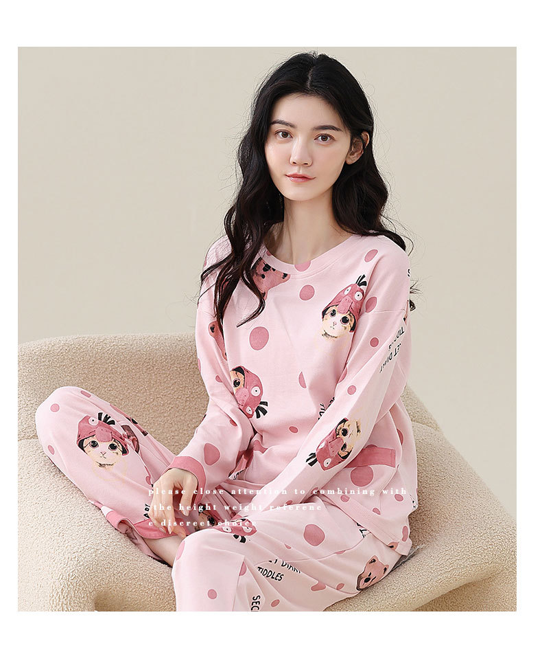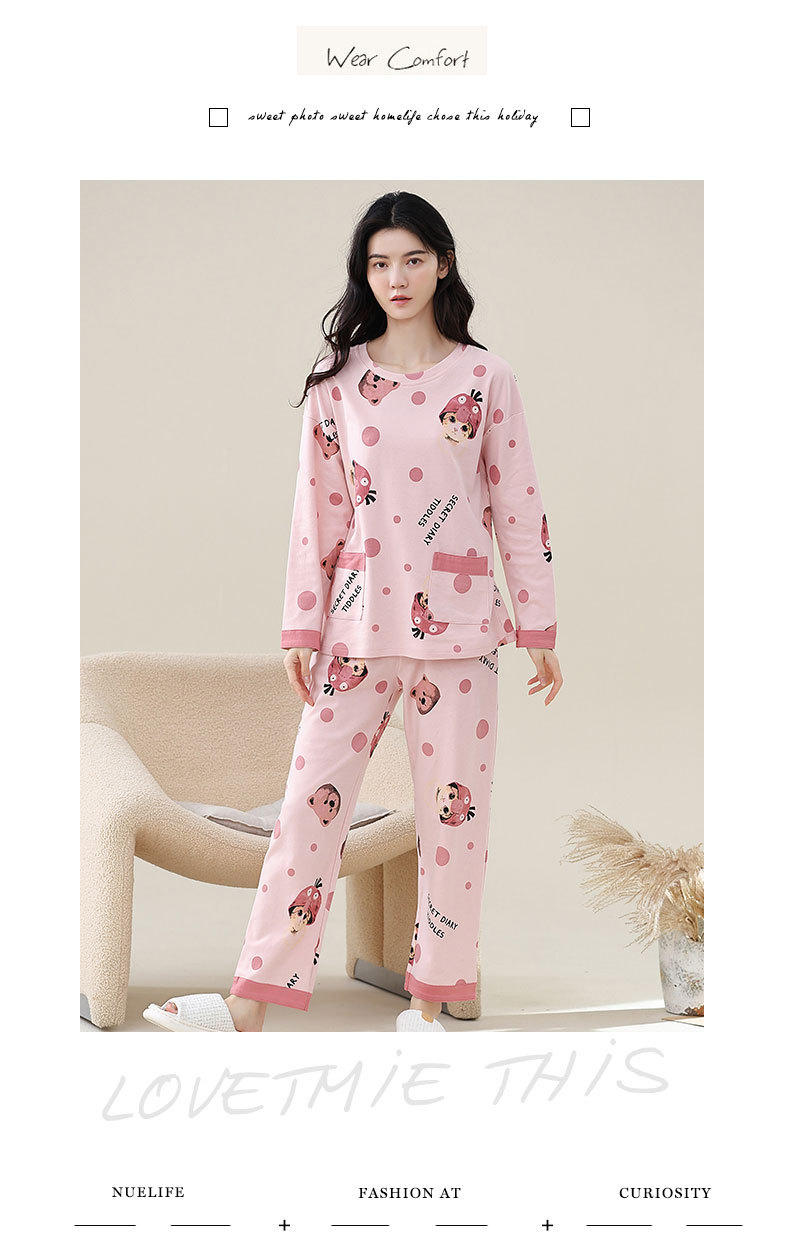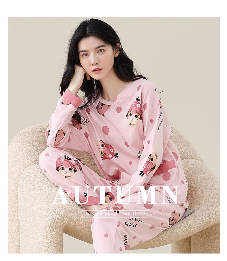 단면 180g 면 잠옷 여성의 가을 둥근 목 긴 소매 바지 세트 간단한 캐주얼 홈 옷 밖에서 입을 수 있습니다.스토어 가기