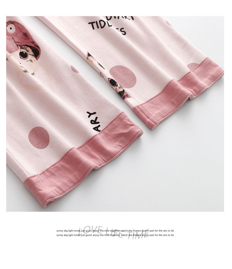 단면 180g 면 잠옷 여성의 가을 둥근 목 긴 소매 바지 세트 간단한 캐주얼 홈 옷 밖에서 입을 수 있습니다.