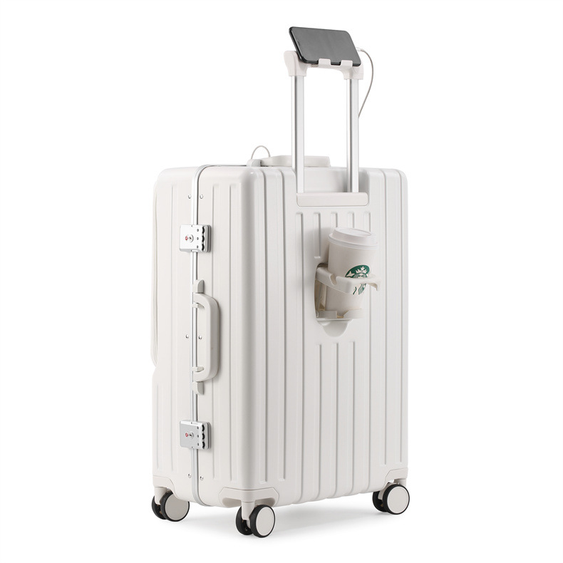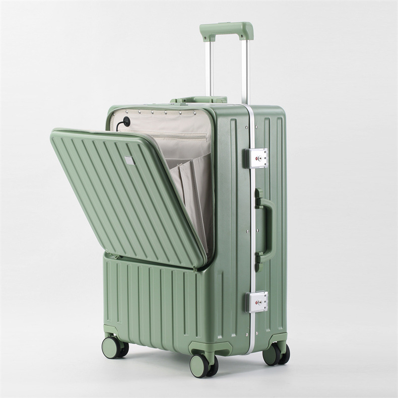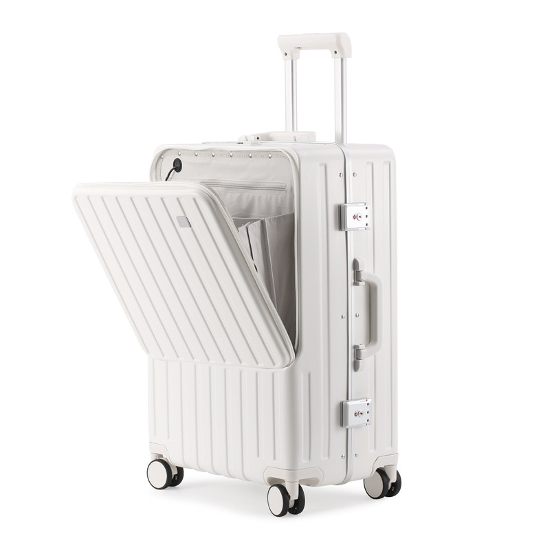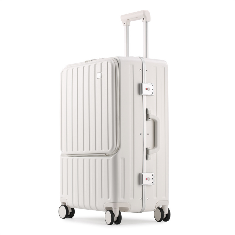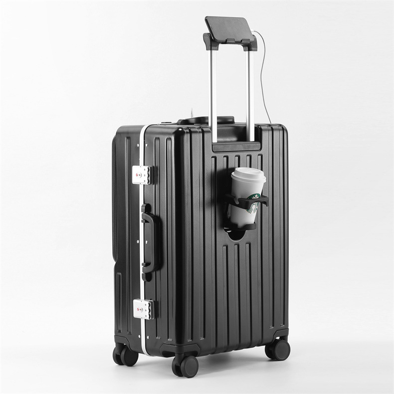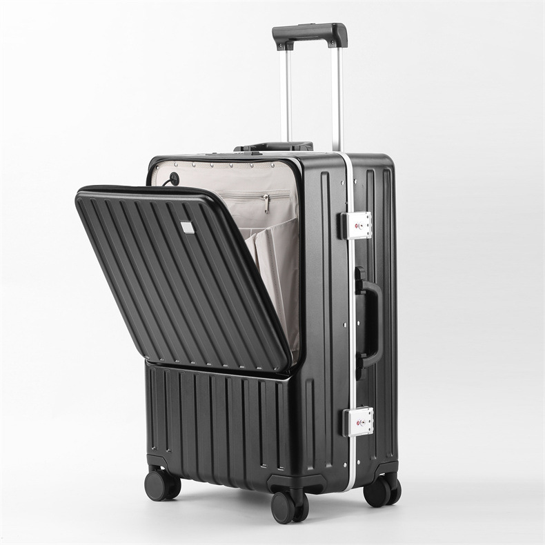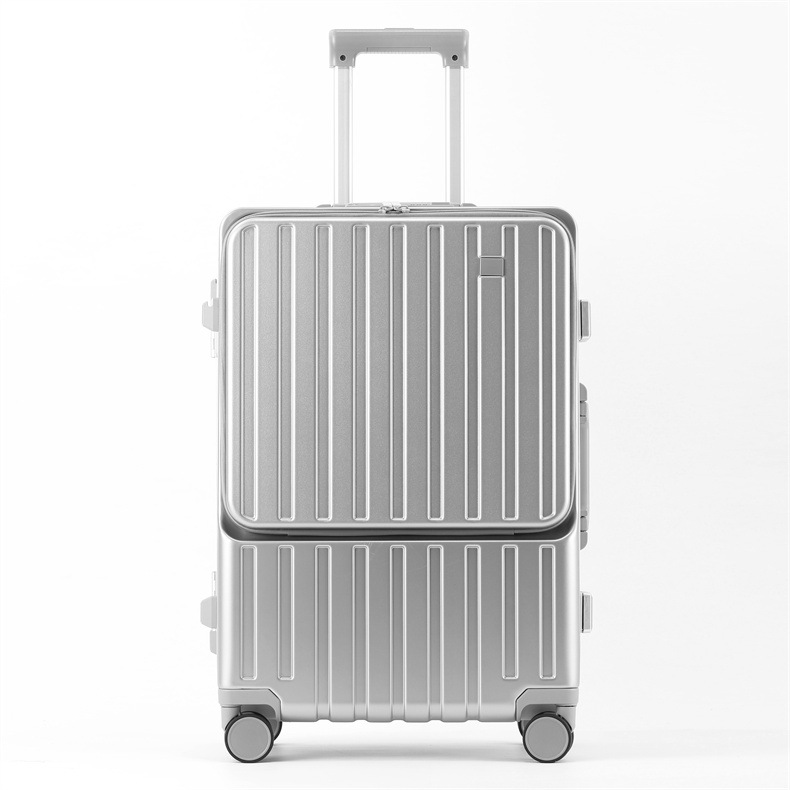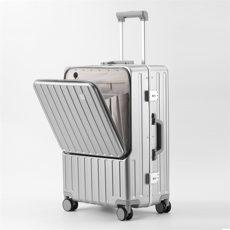 전면 오프닝 박스 알루미늄 합금 프레임 수하물 학생 하이 엔드 패션 여행 암호 상자 유니버설 휠 트롤리 케이스스토어 가기