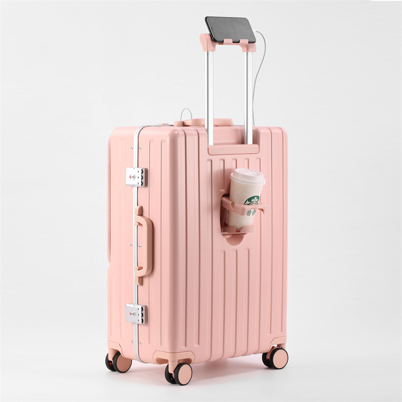 전면 오프닝 박스 알루미늄 합금 프레임 수하물 학생 하이 엔드 패션 여행 암호 상자 유니버설 휠 트롤리 케이스