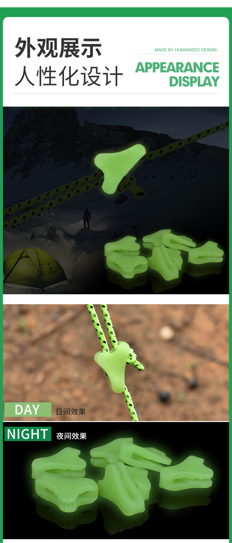 야외 발광 로프 버클 형광 텐트 윈드 로프 버클 자체 발광 미끄럼 방지 조정 버클 플라스틱 삼각형 캐노피 액세서리