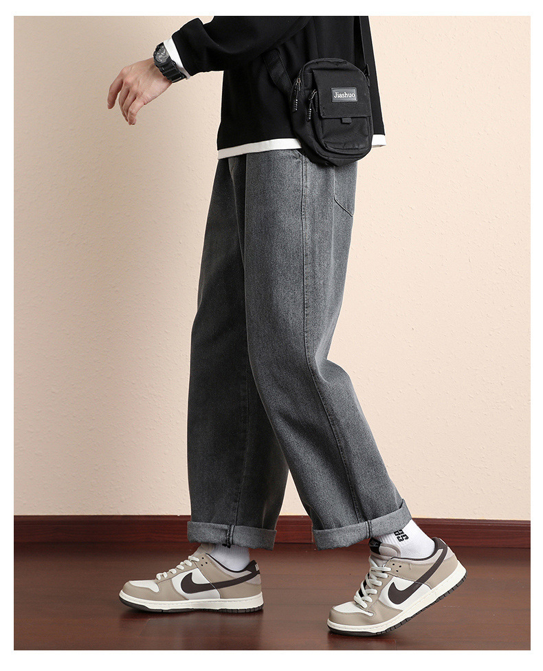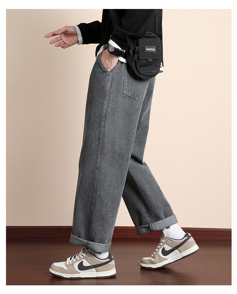 청바지 남성 가을과 겨울 새로운 아메리칸 스타일 하이 스트리트 인 9 점 소년 트렌디 브랜드 캐주얼 스트레이트 루즈한 바지