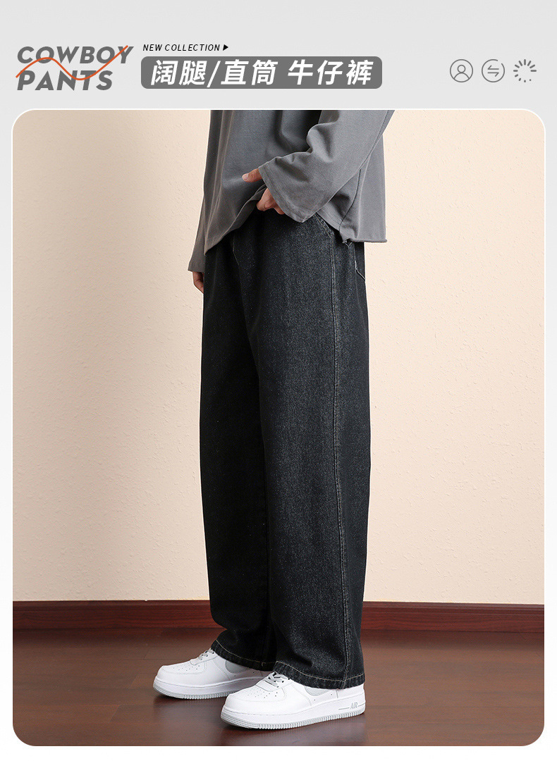 청바지 남성 가을과 겨울 새로운 아메리칸 스타일 하이 스트리트 인 9 점 소년 트렌디 브랜드 캐주얼 스트레이트 루즈한 바지스토어 가기
