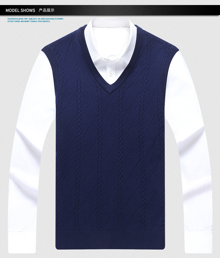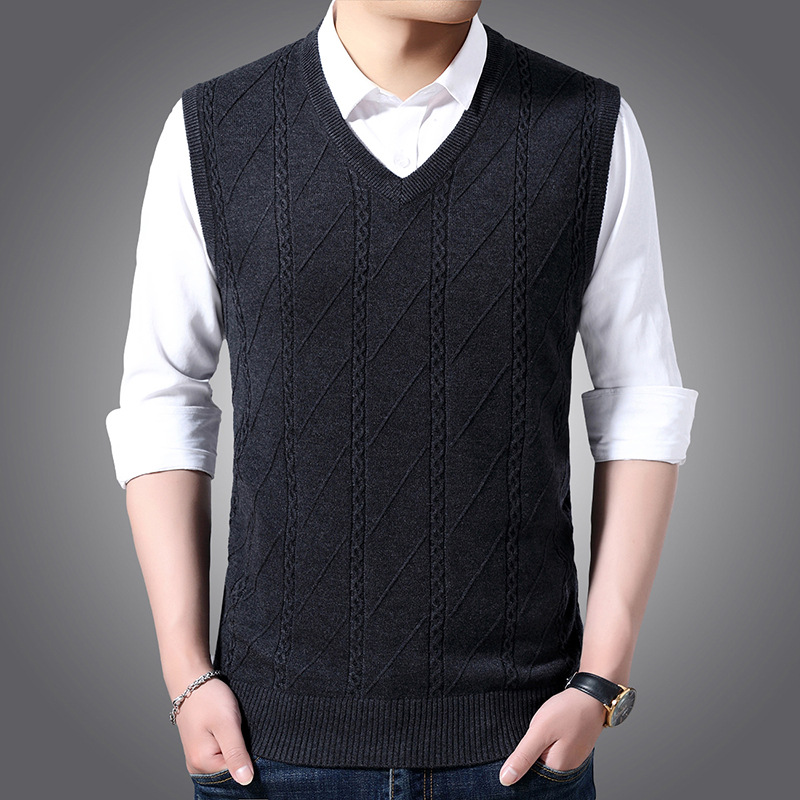 가을과 겨울 단색 양모 조끼 남성용 V 넥 중년 및 노인 모직 스웨터 조끼 남성용 양복 조끼 민소매