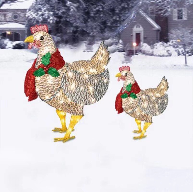 크로스 보더 새로운 크리스마스 led 수탉 빛나는 만화 시뮬레이션 휴일 장식 장식품 수지 장식 빛나는