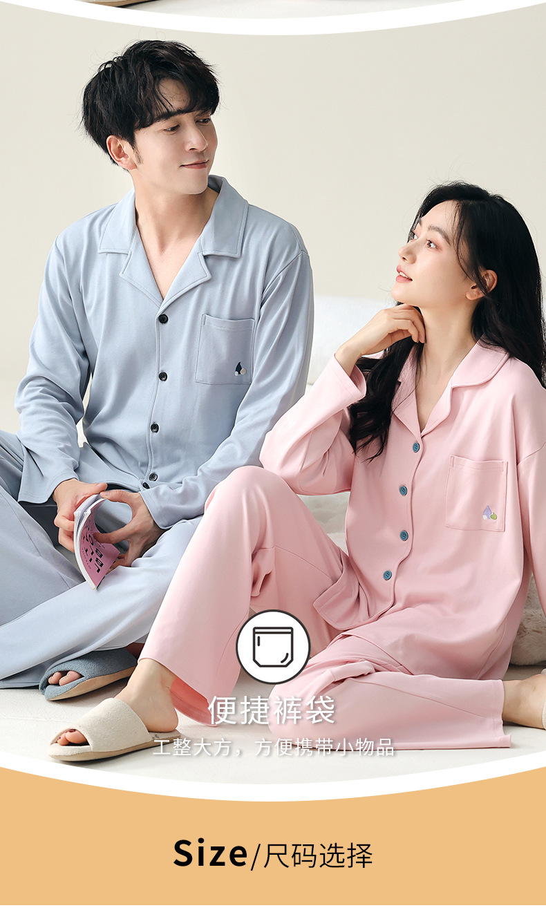 가을 닫기 면 잠옷 여자의 긴 소매 바지 세트 가을 간단한 플러스 사이즈 커플 잠옷은 가정용 착용 가능스토어 가기