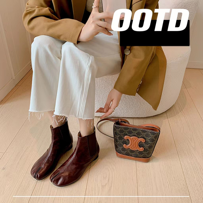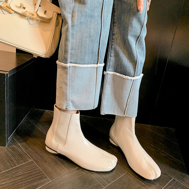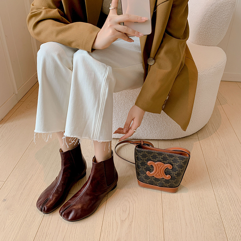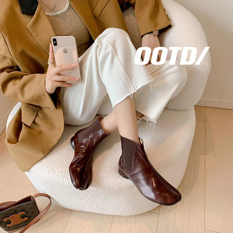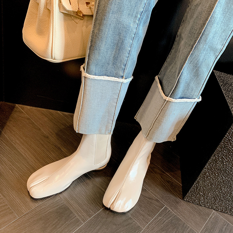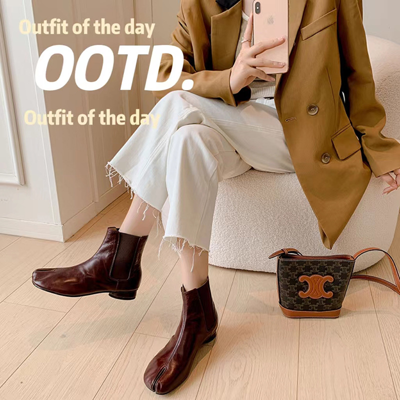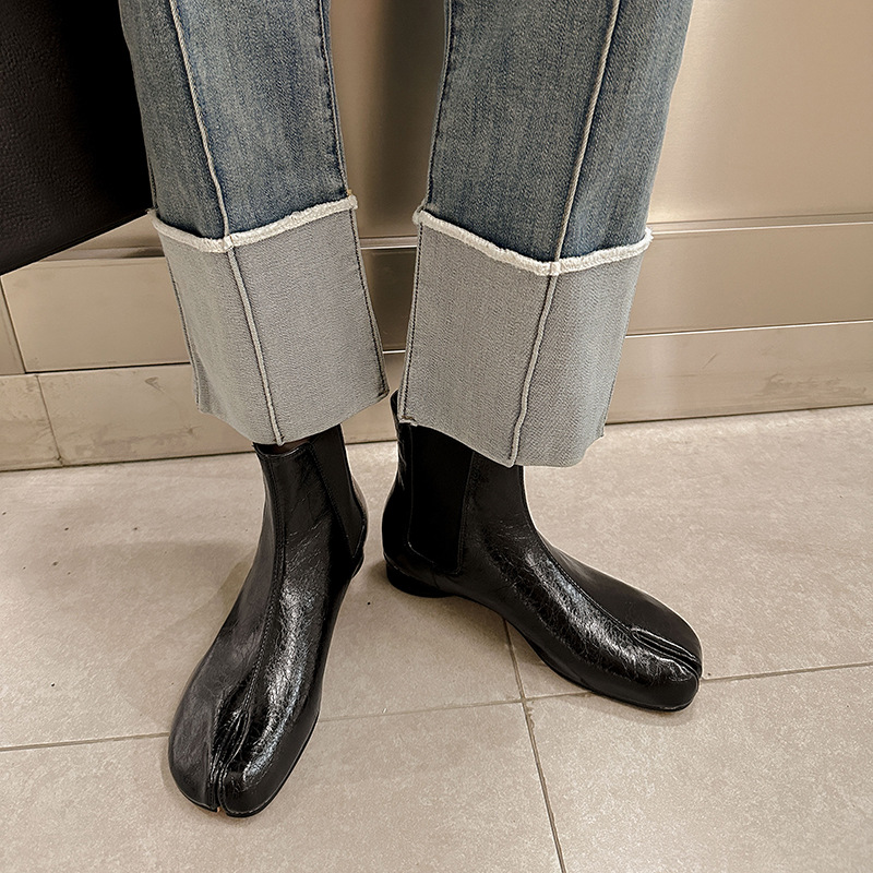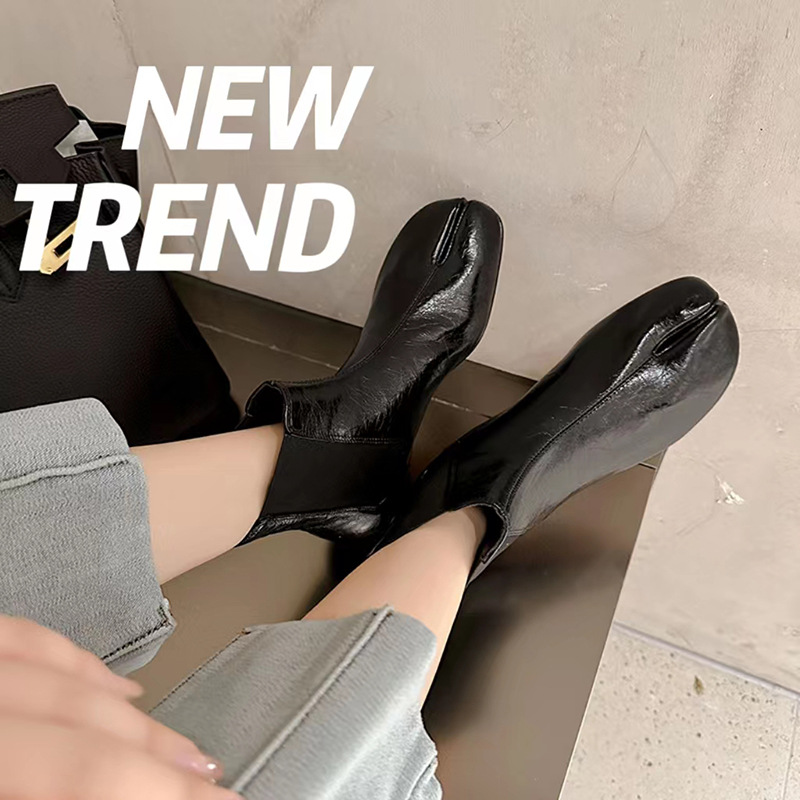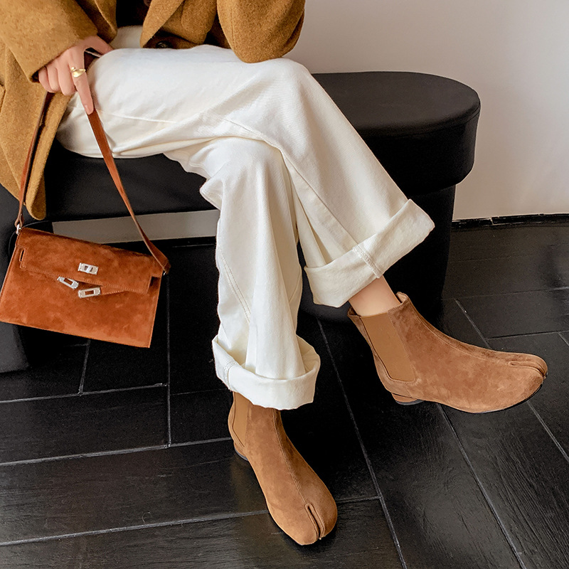 지진 홈 ~ 멋진 성격! 2024-발가락 돼지 발가락 부츠 여성용 슬립 온 미드 힐 빈티지 첼시 부츠