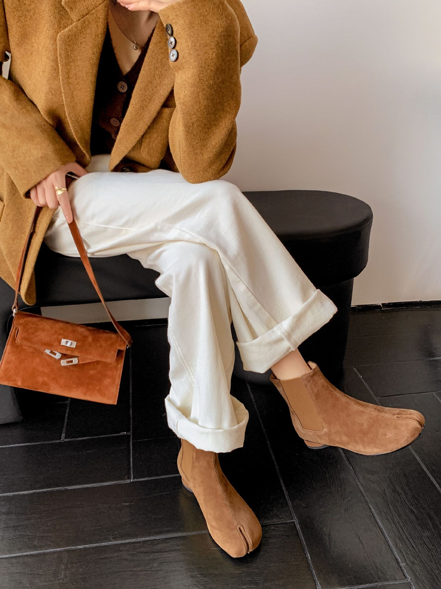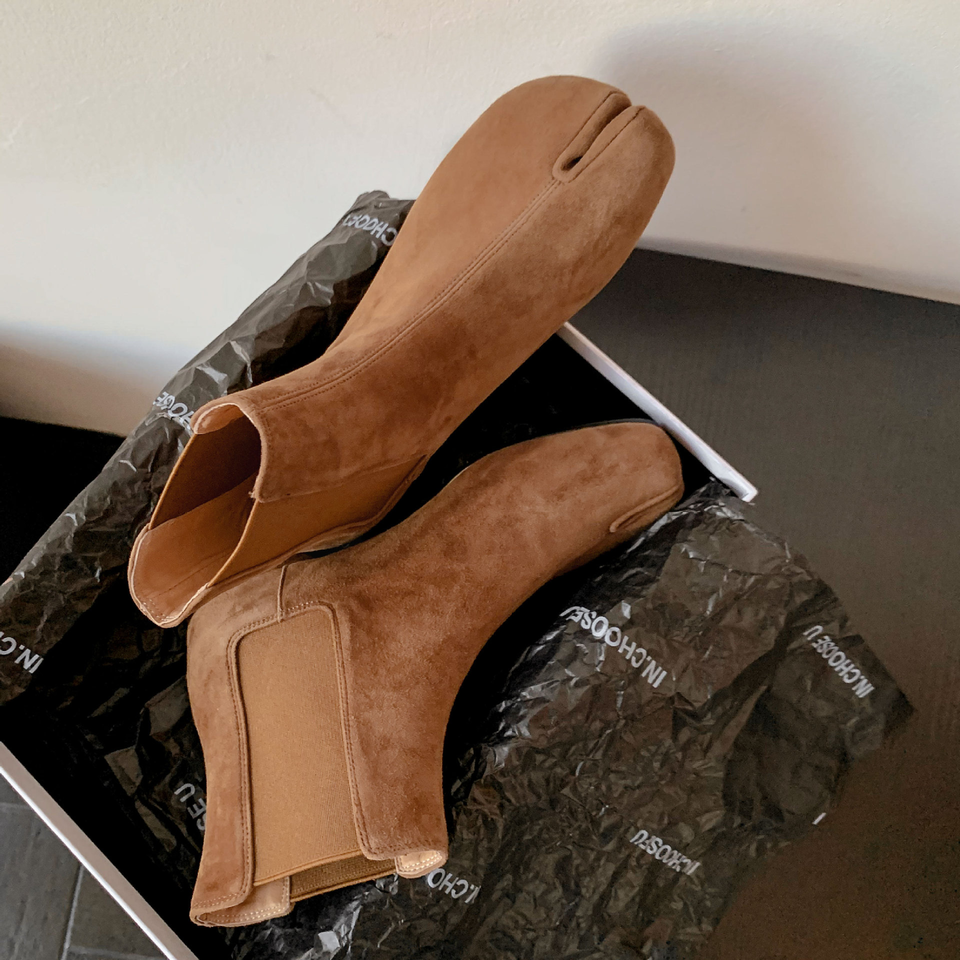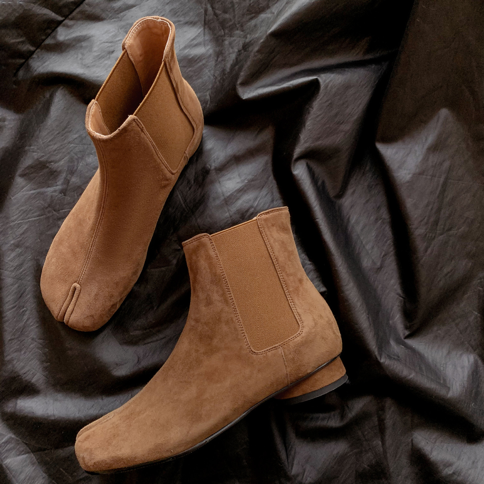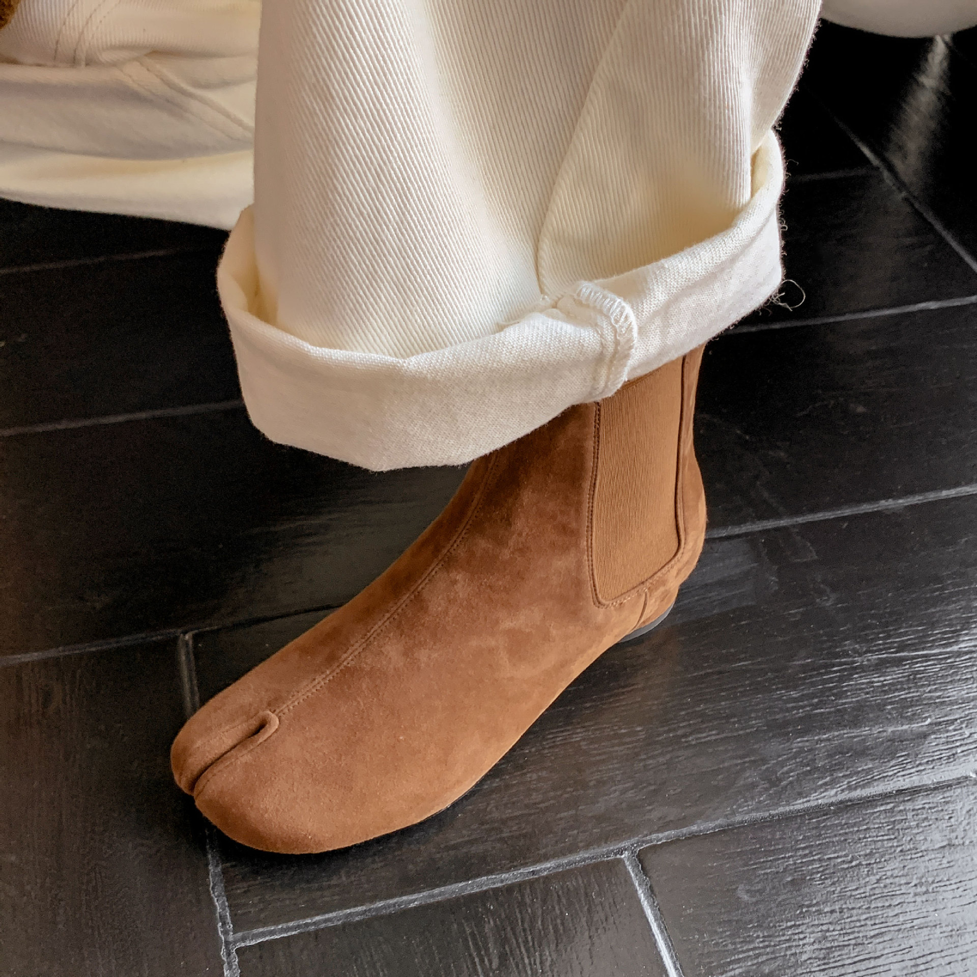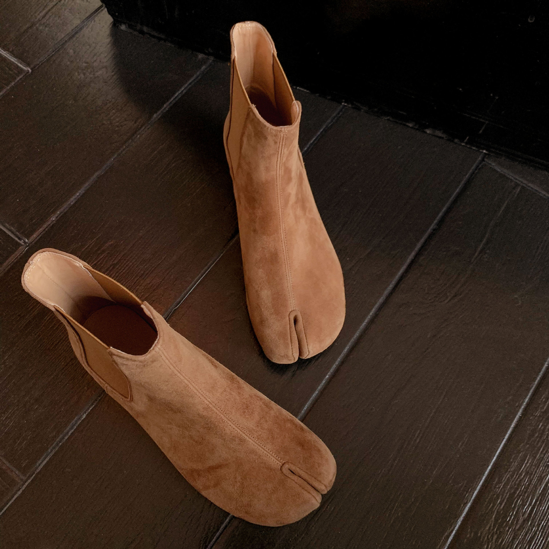 지진 홈 ~ 멋진 성격! 2024-발가락 돼지 발가락 부츠 여성용 슬립 온 미드 힐 빈티지 첼시 부츠