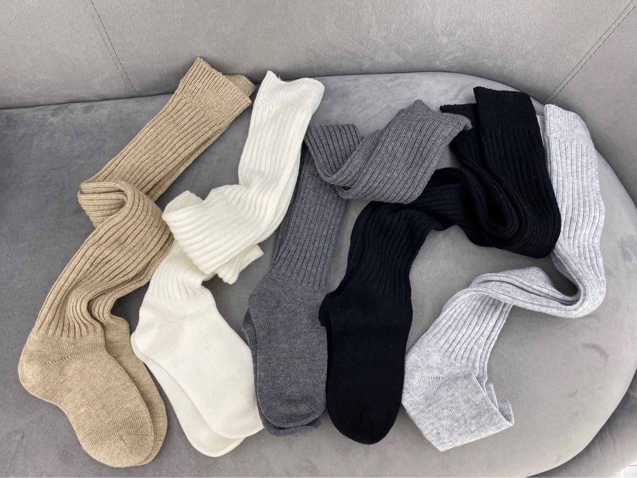 초가을 한국 이스트 게이트 니하이 울 양말 헬더 여주인 피트 스트라이프 캐시미어 솔리드 컬러 스택 튜브 양말