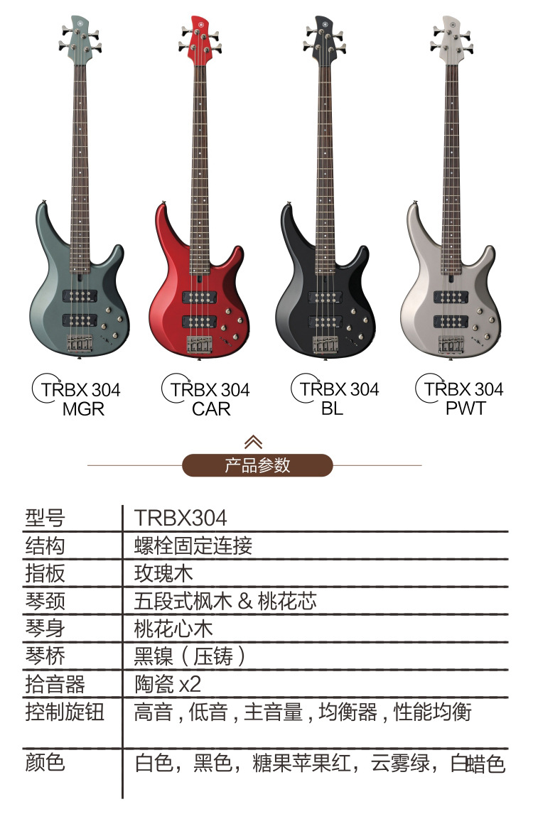 YAMAHA 일렉트릭베이스 4 현베이스 초보자 기타 열대 스타일 우드 베니어 TRBx305