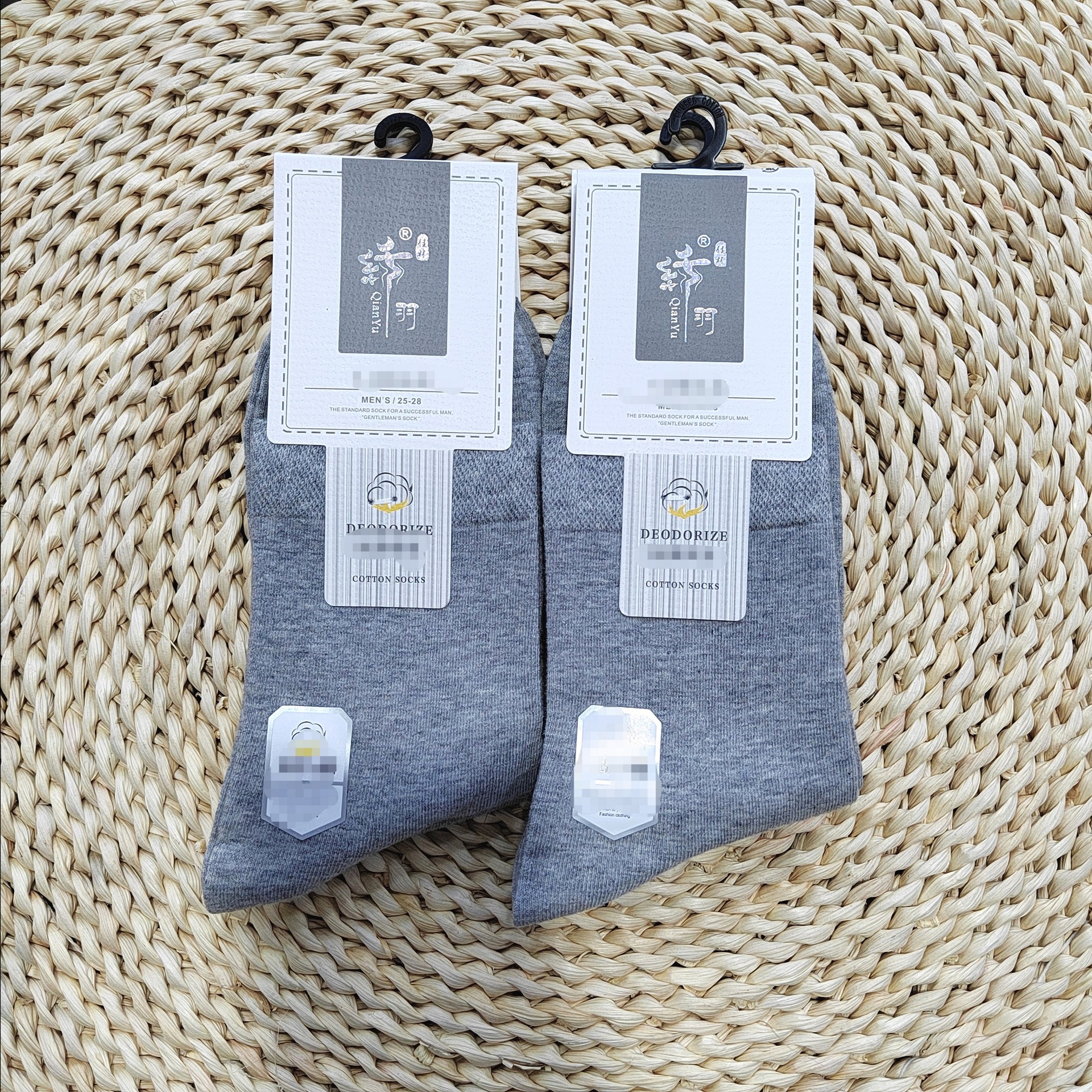 고급 깃털 남성용 봄과 가을 겨울 하이 배럴 블랙 및 화이트 그레이 퓨어 컬러 면 양말 캐주얼 퓨어 컬러 블랙 및 화이트 그레이 땀 흡수 비즈니스