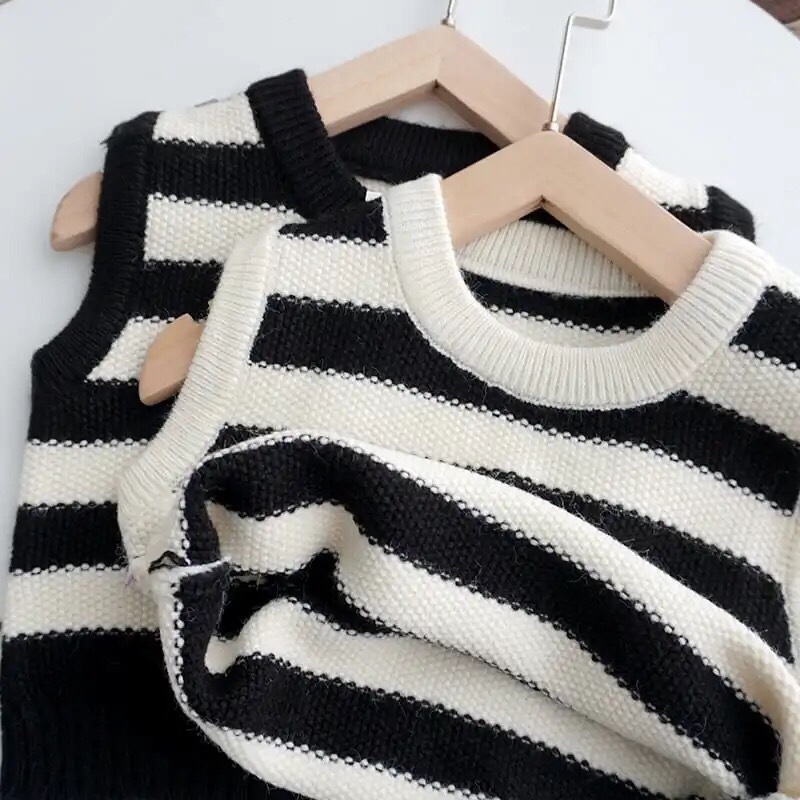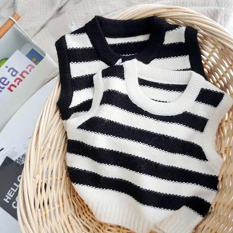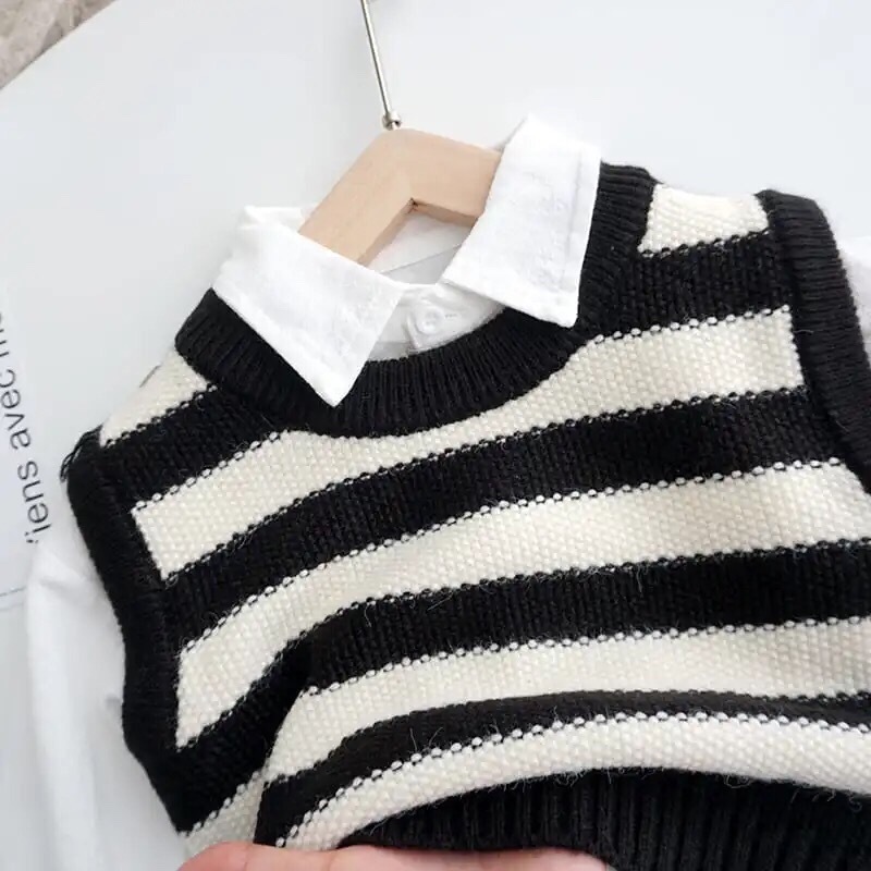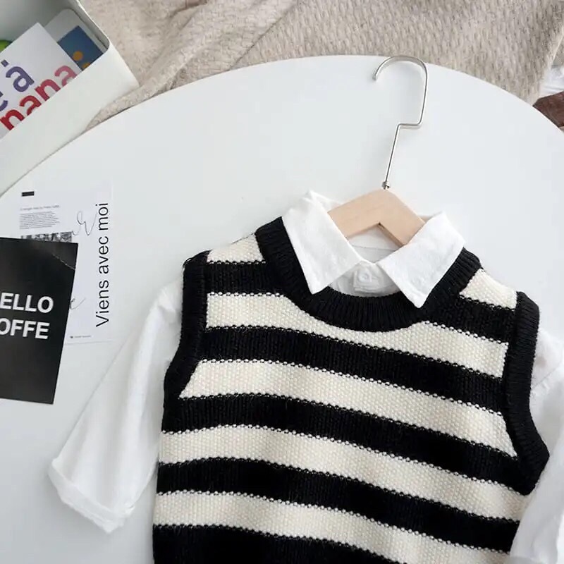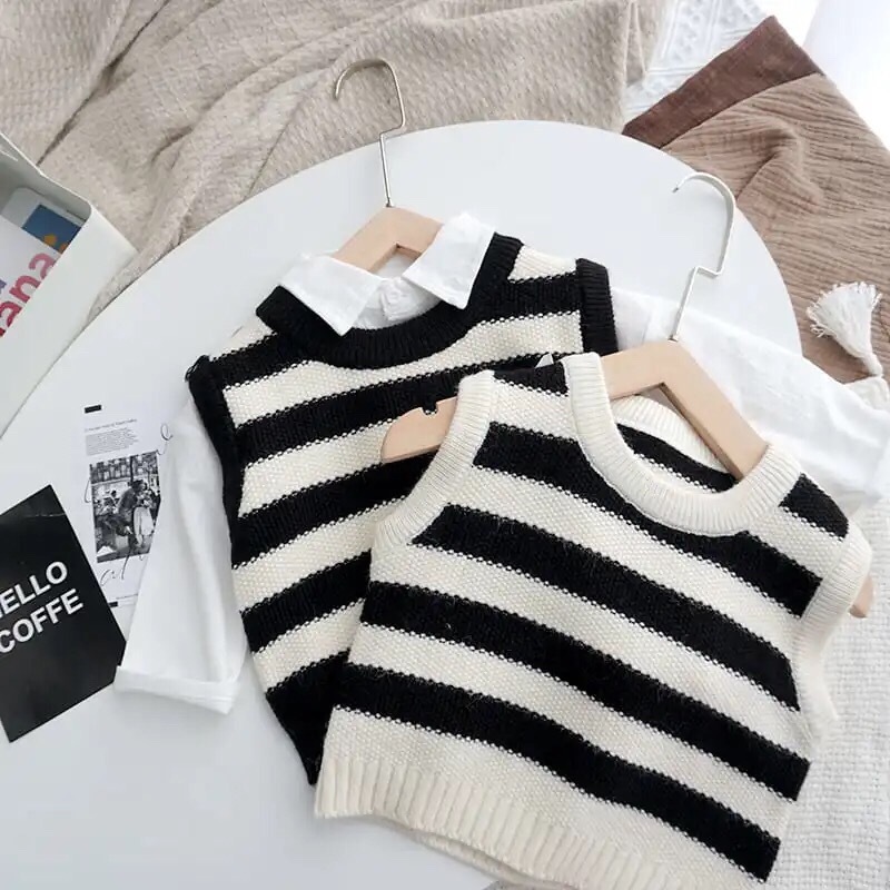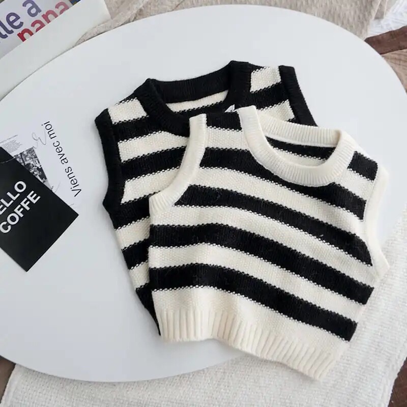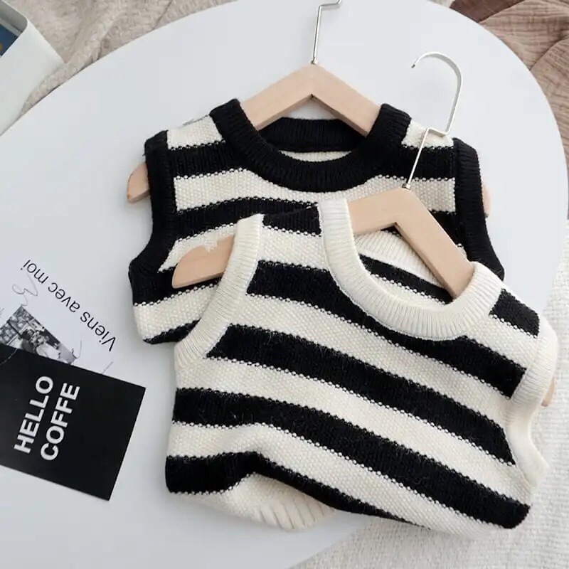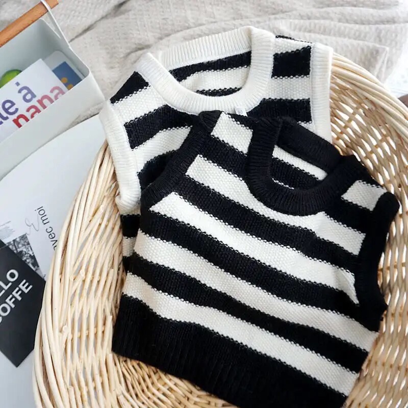 아동복 아기의 스트라이프 니트 조끼 2023 남녀 아동 서양식 스웨터 겉옷 아동 가을 의류 아기의 양복 조끼스토어 가기