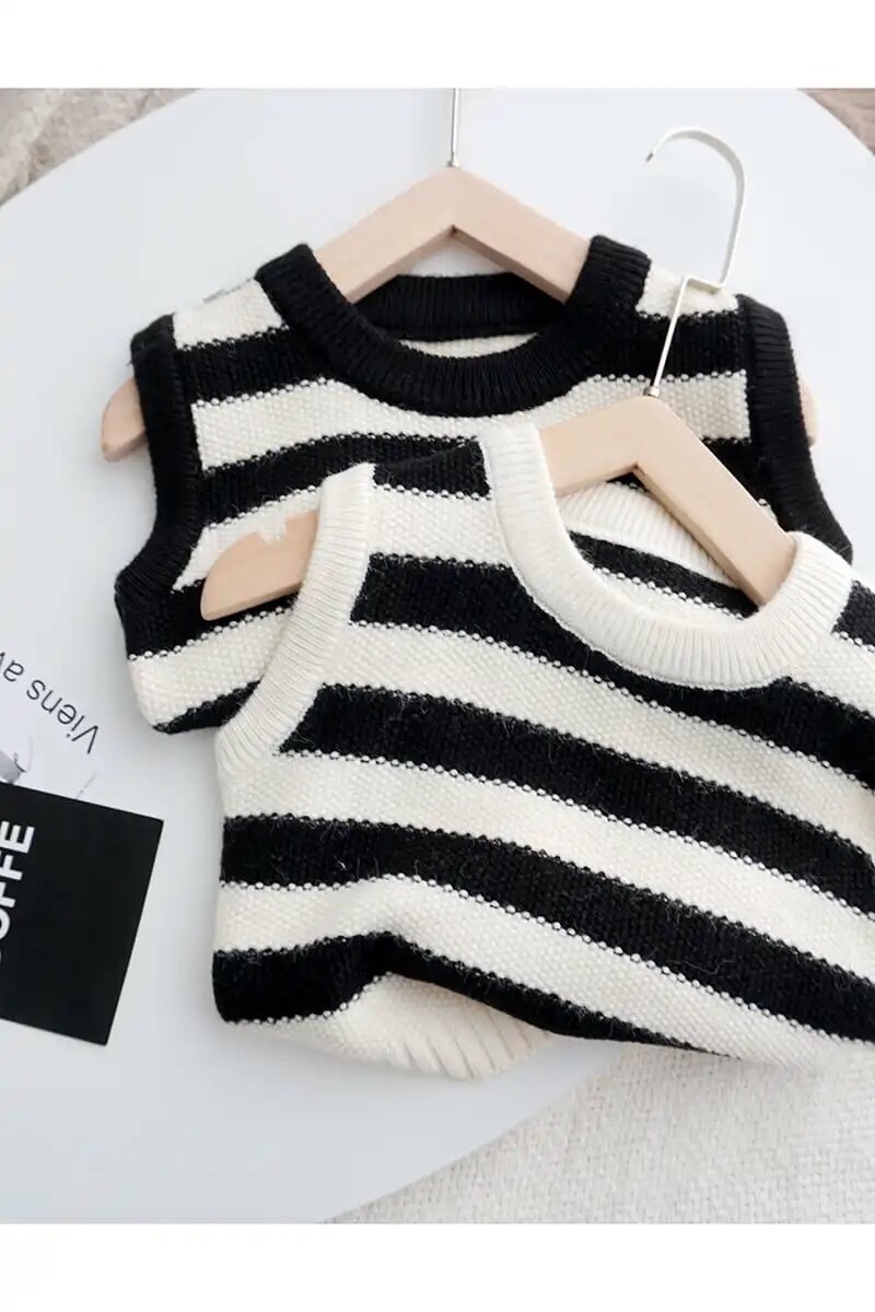 아동복 아기의 스트라이프 니트 조끼 2023 남녀 아동 서양식 스웨터 겉옷 아동 가을 의류 아기의 양복 조끼
