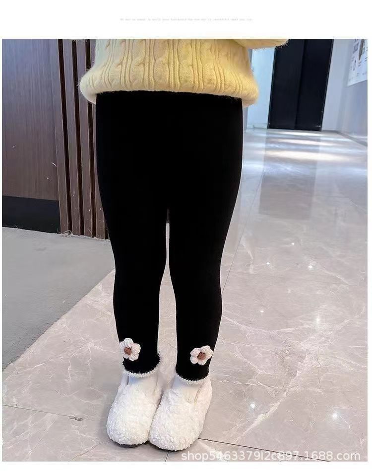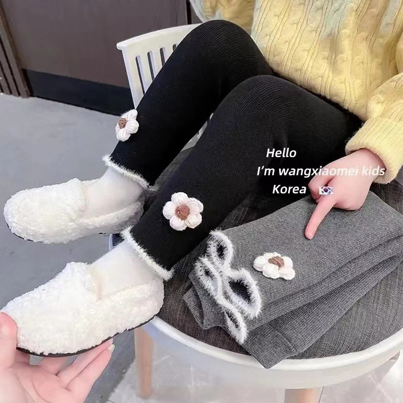 여아 기모 레깅스 가을/겨울 2023 새로운 스타일 얇은 벨벳 아우터 베이비 램 벨벳 스타일 어린이 모든 매치 팬츠