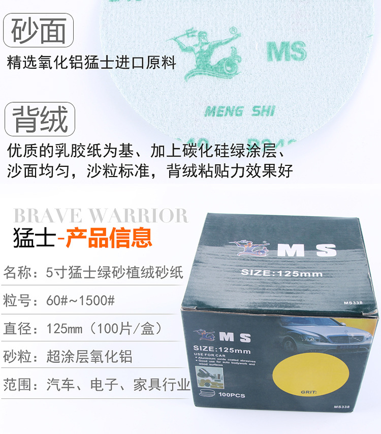 5 인치 비 다공성 멩시 드라이 샌딩 페이퍼 디스크 연마 사포 몰려 사포 MS 녹색 가스 샌딩 페이퍼 125mm