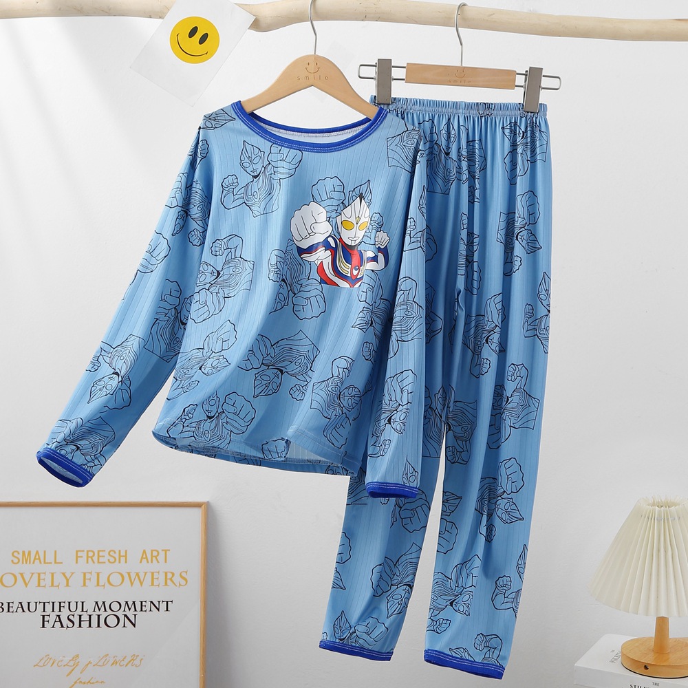 소년 잠옷 어린이 봄과 가을 긴팔 소년 '얇은 대형 어린이와 소녀 만화 가정복 소년 세트 여름스토어 가기