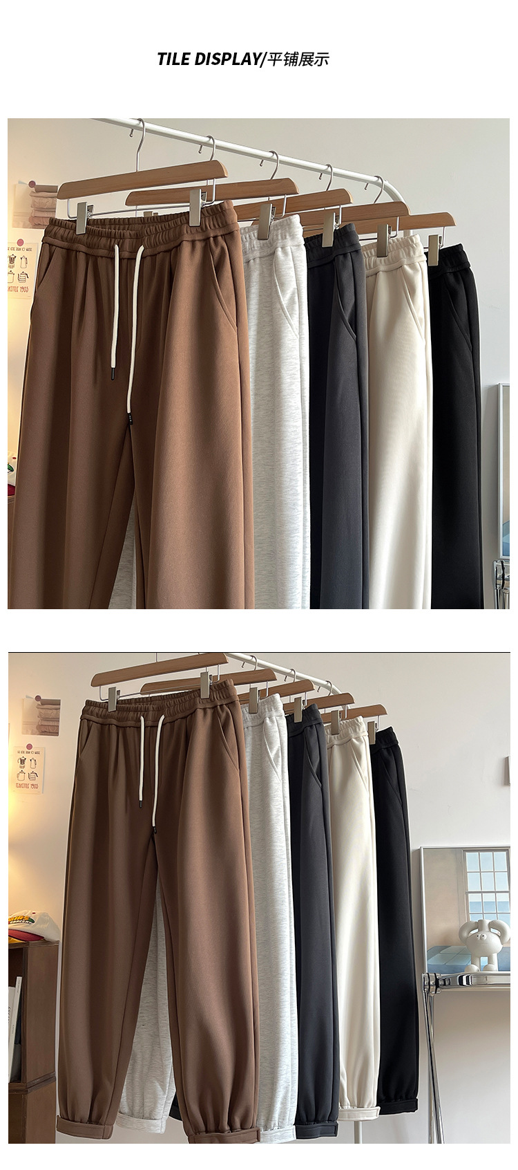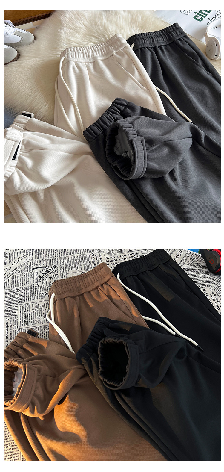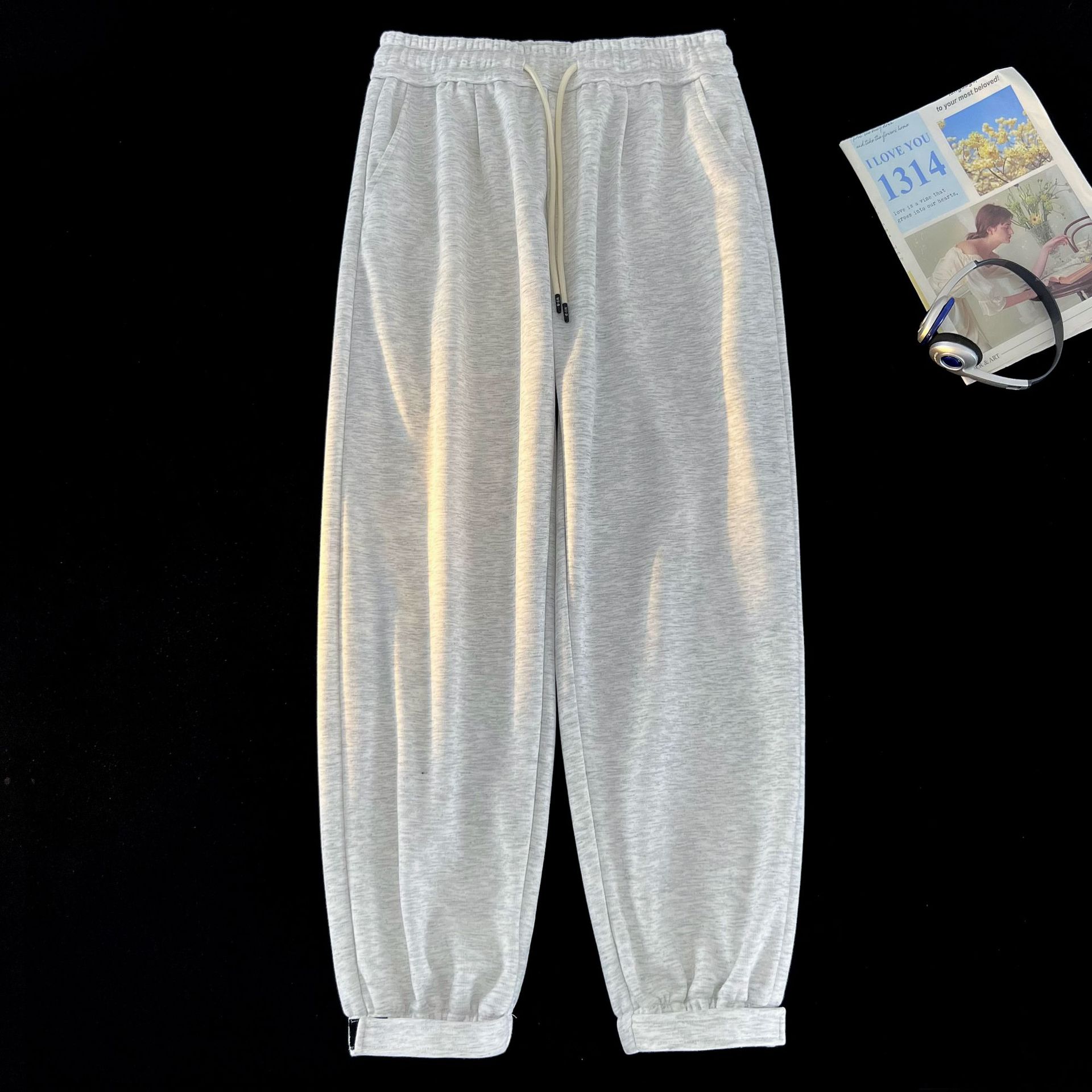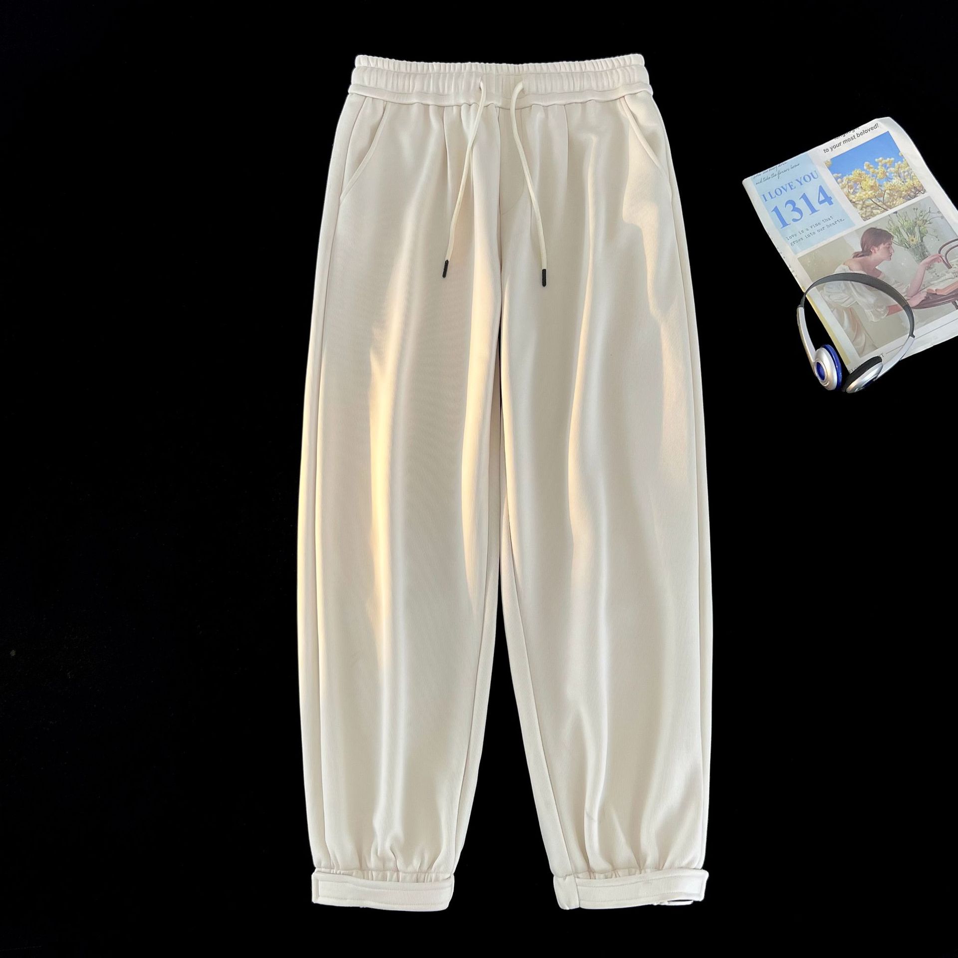 2023 신상 남성용 심플 트렌디 한국식 솔리드 컬러 올매치 캐주얼 팬츠 한국식 루즈한 스포츠 레그 팬츠 남성용스토어 가기