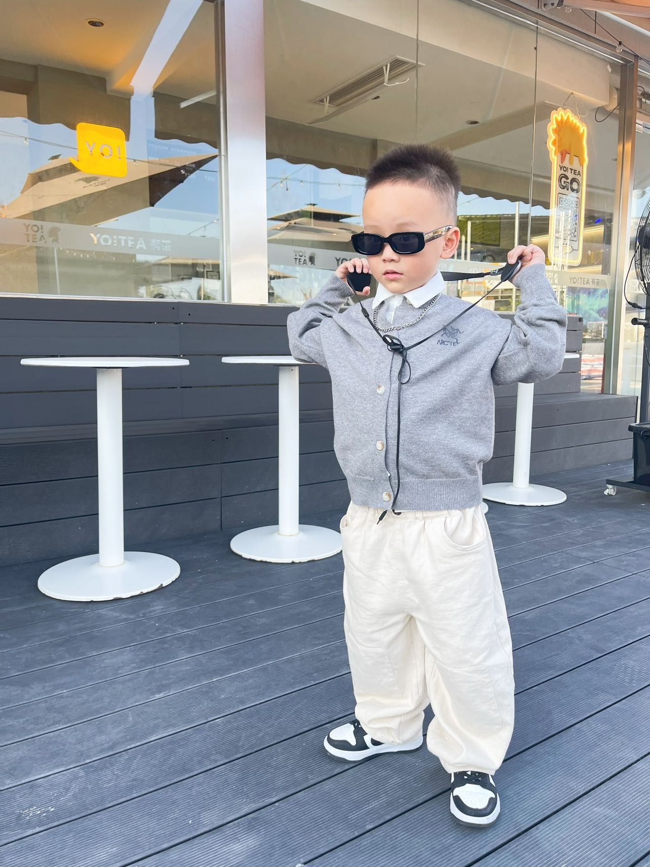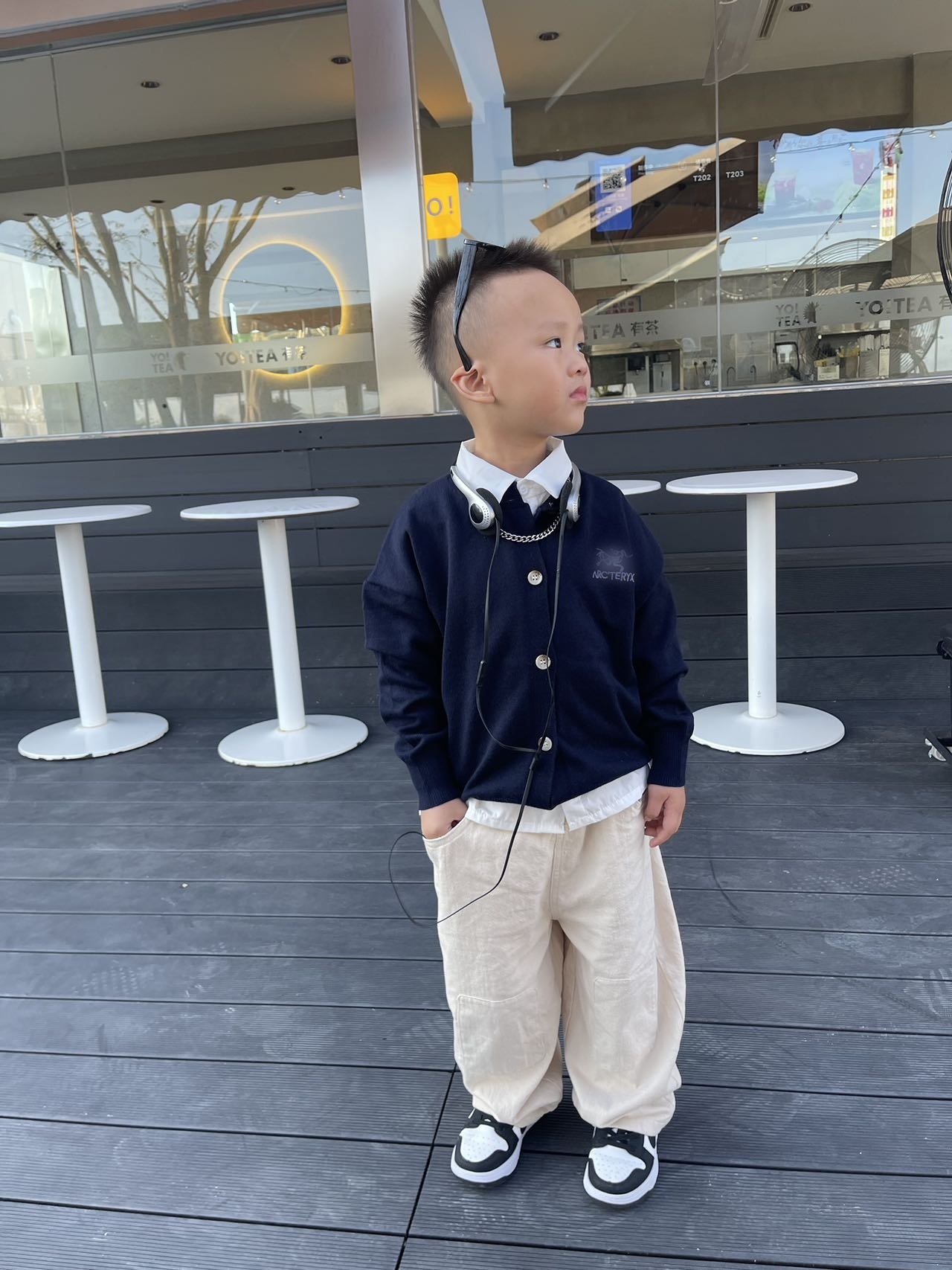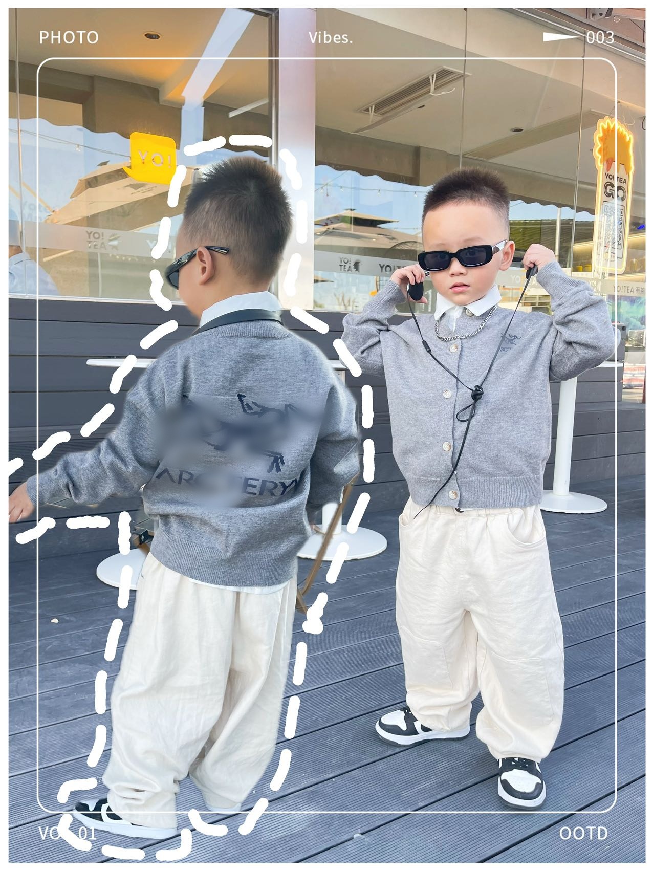 소년과 소녀를위한 아기 카디건 스웨터의 한국어 버전 자수 새 부모-자식 줄무늬 23061 가을과 겨울 크로스 보더