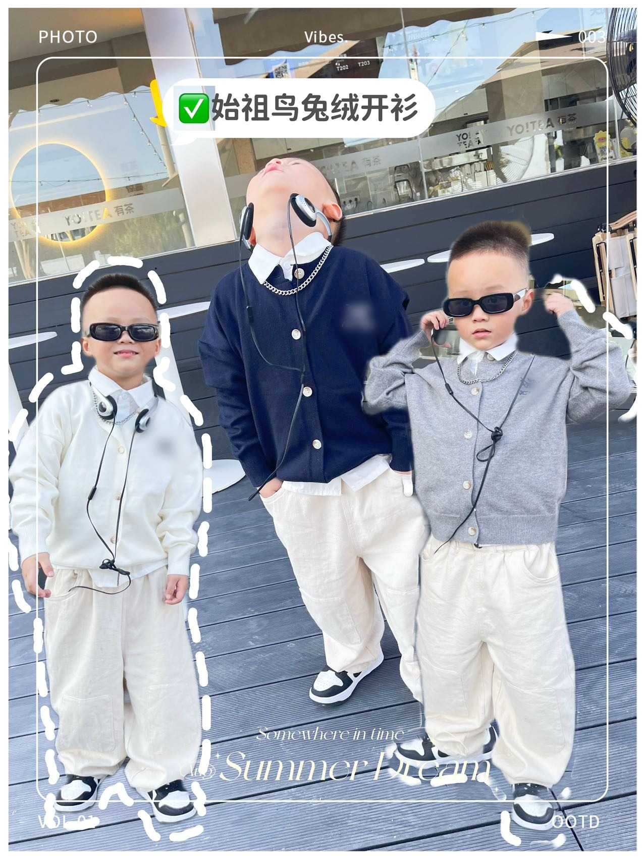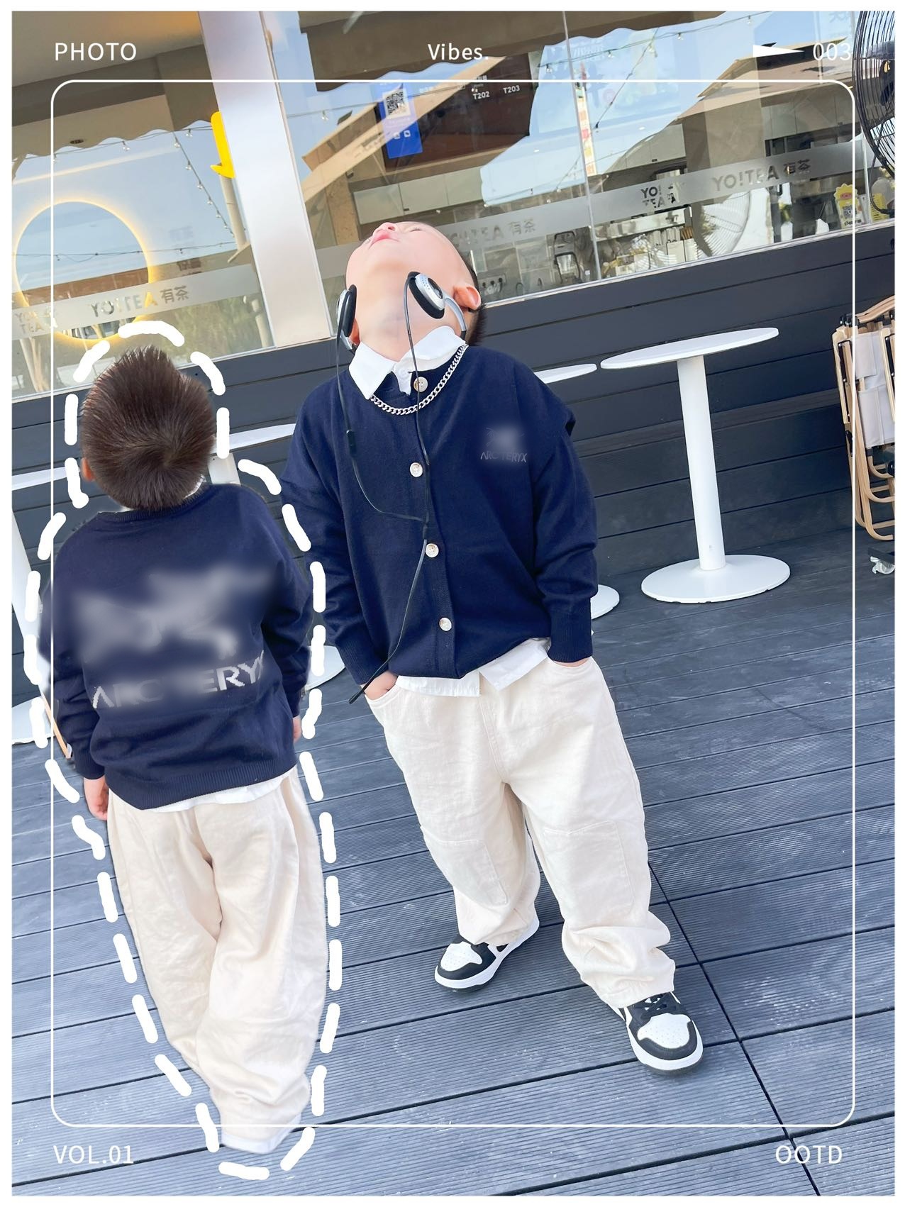 소년과 소녀를위한 아기 카디건 스웨터의 한국어 버전 자수 새 부모-자식 줄무늬 23061 가을과 겨울 크로스 보더스토어 가기