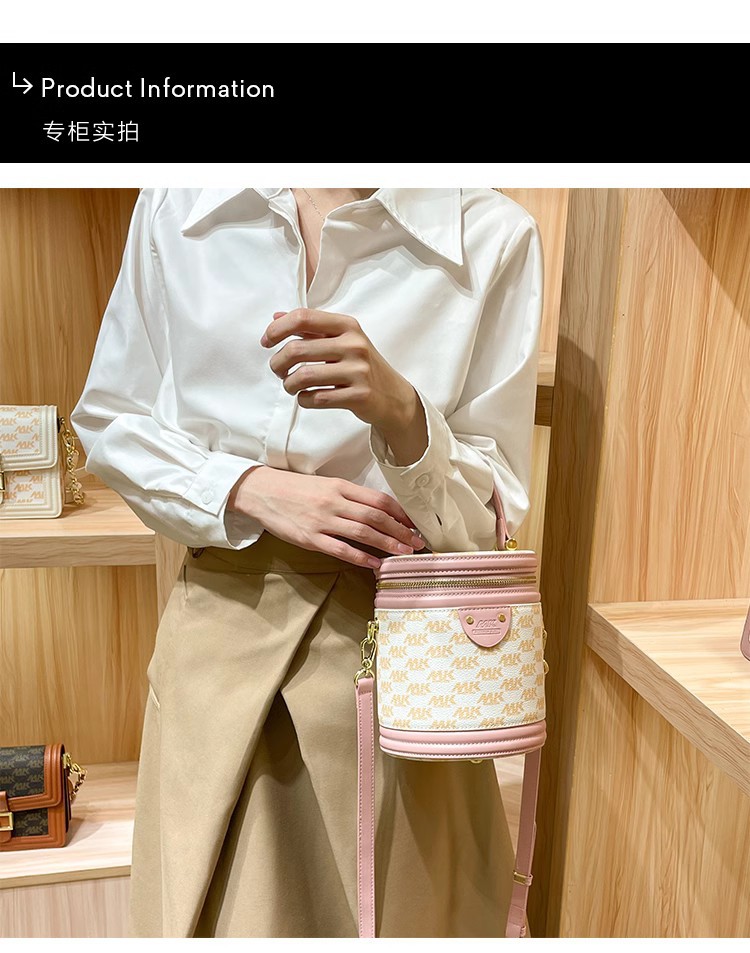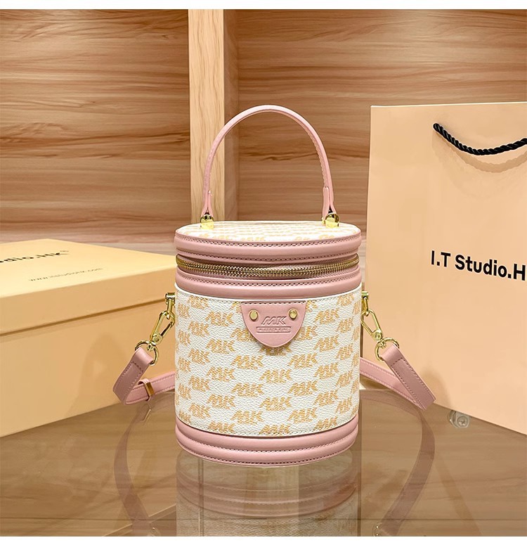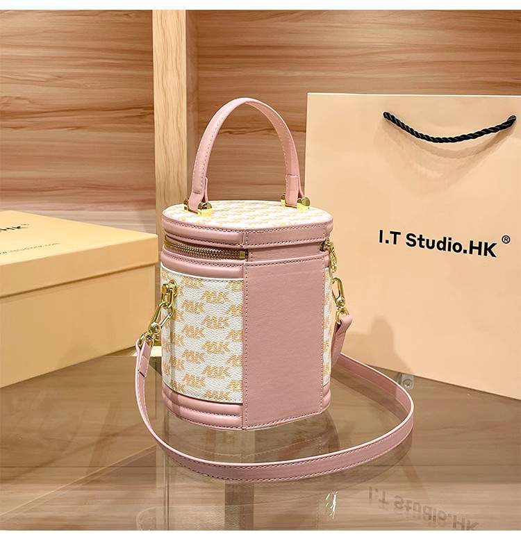 홍콩 정품 가죽 버킷 백 여성용 2023 년 새로운 봄과 여름 고급 틈새 휴대용 원통형 크로스 바디 백스토어 가기