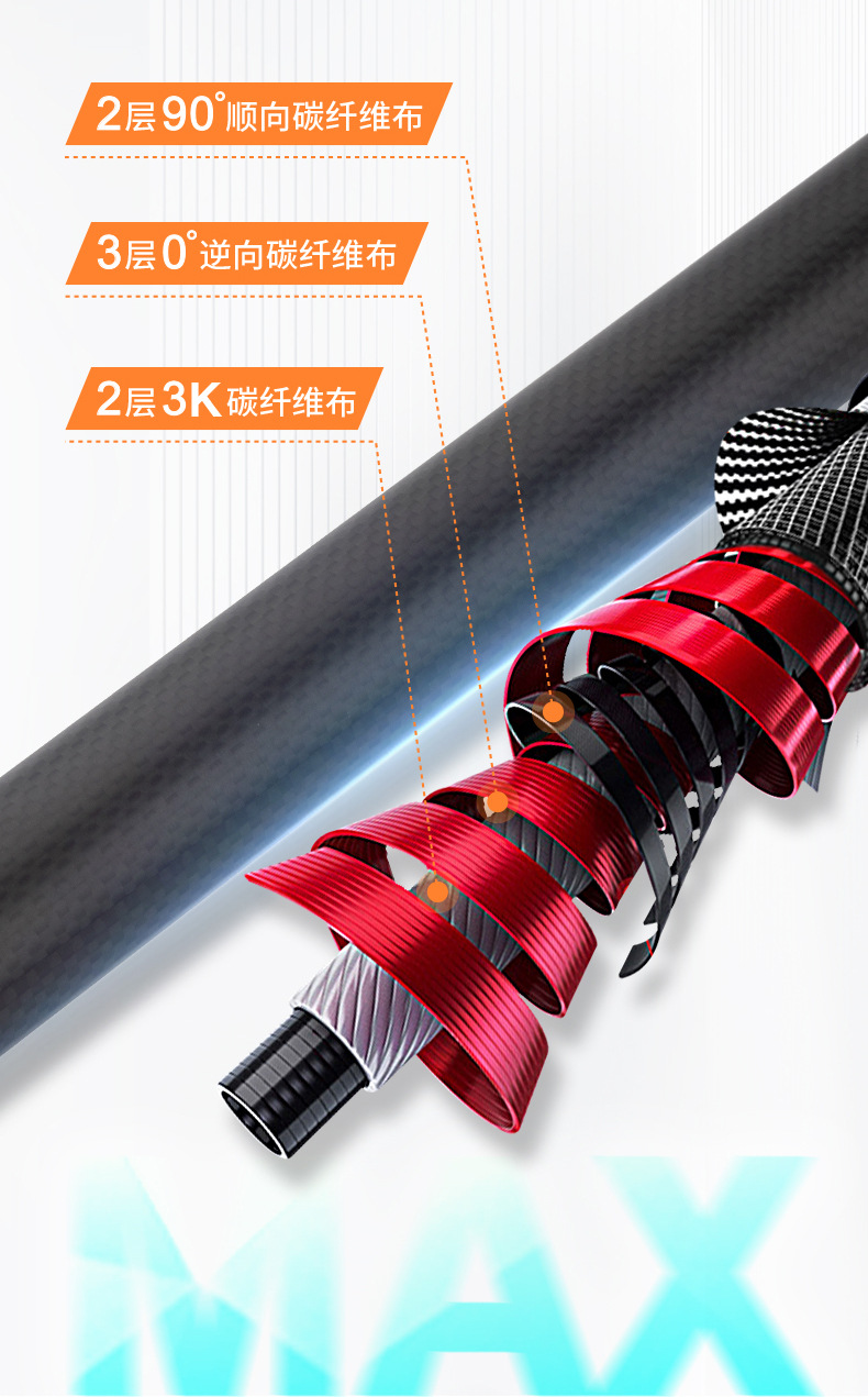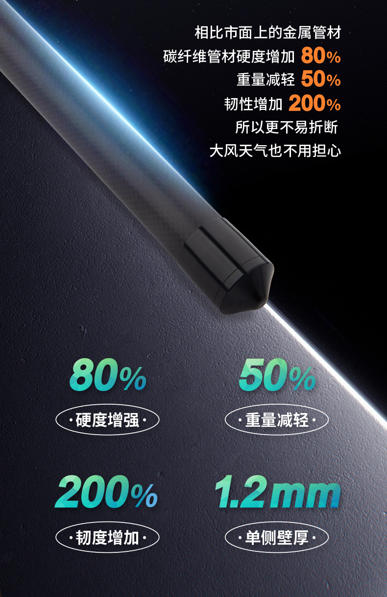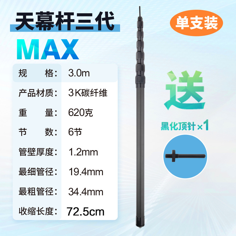 3 세대 맥스 탄소섬유 3K 옷감 스카이 커텐 폴 텔레스코픽 카본 폴 초하드 초경량 블랙 윈드 텐트 폴