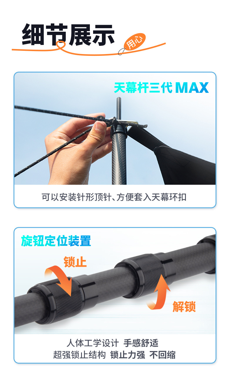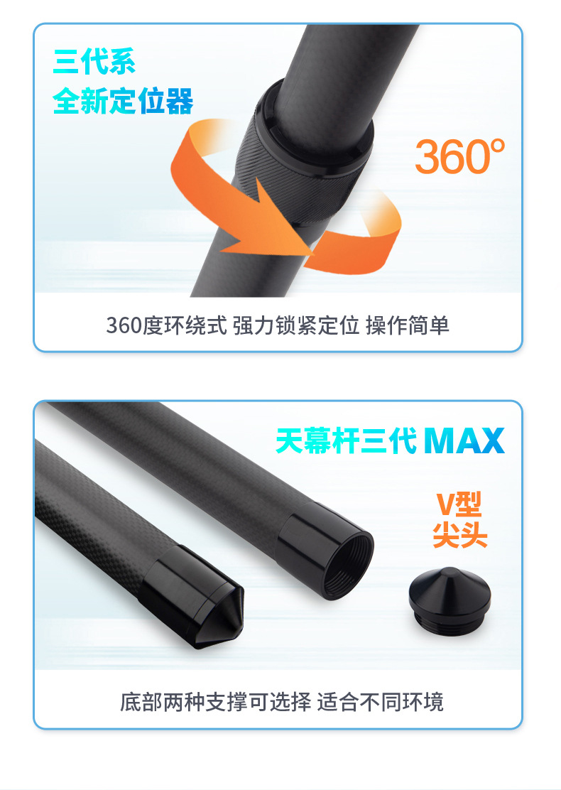 3 세대 맥스 탄소섬유 3K 옷감 스카이 커텐 폴 텔레스코픽 카본 폴 초하드 초경량 블랙 윈드 텐트 폴스토어 가기